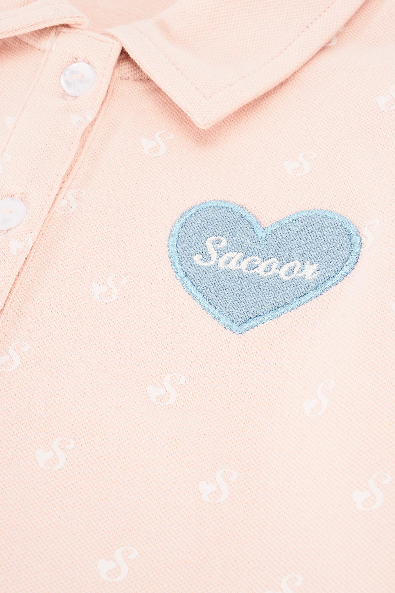 Girl piquet polo with custom pattern of very delicate design brand. Short sleeve with contrast tone. Heart with Sacoor embroidery, printed on the chest area. Smooth collar and regular neckline with 3 buttons. Slight side openings. Made of cotton and spandex, making it a comfortable piece with a lot of flexibility.