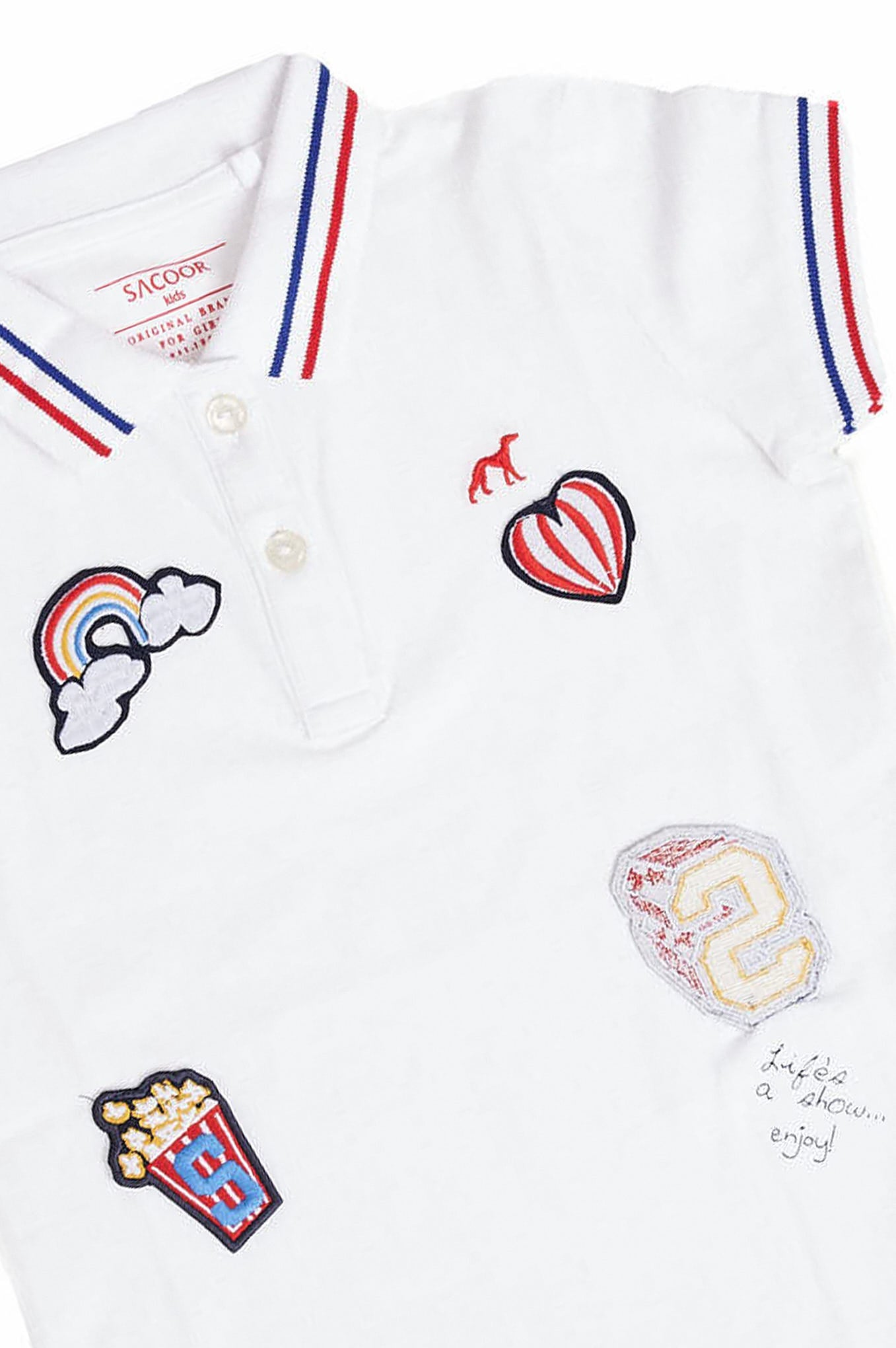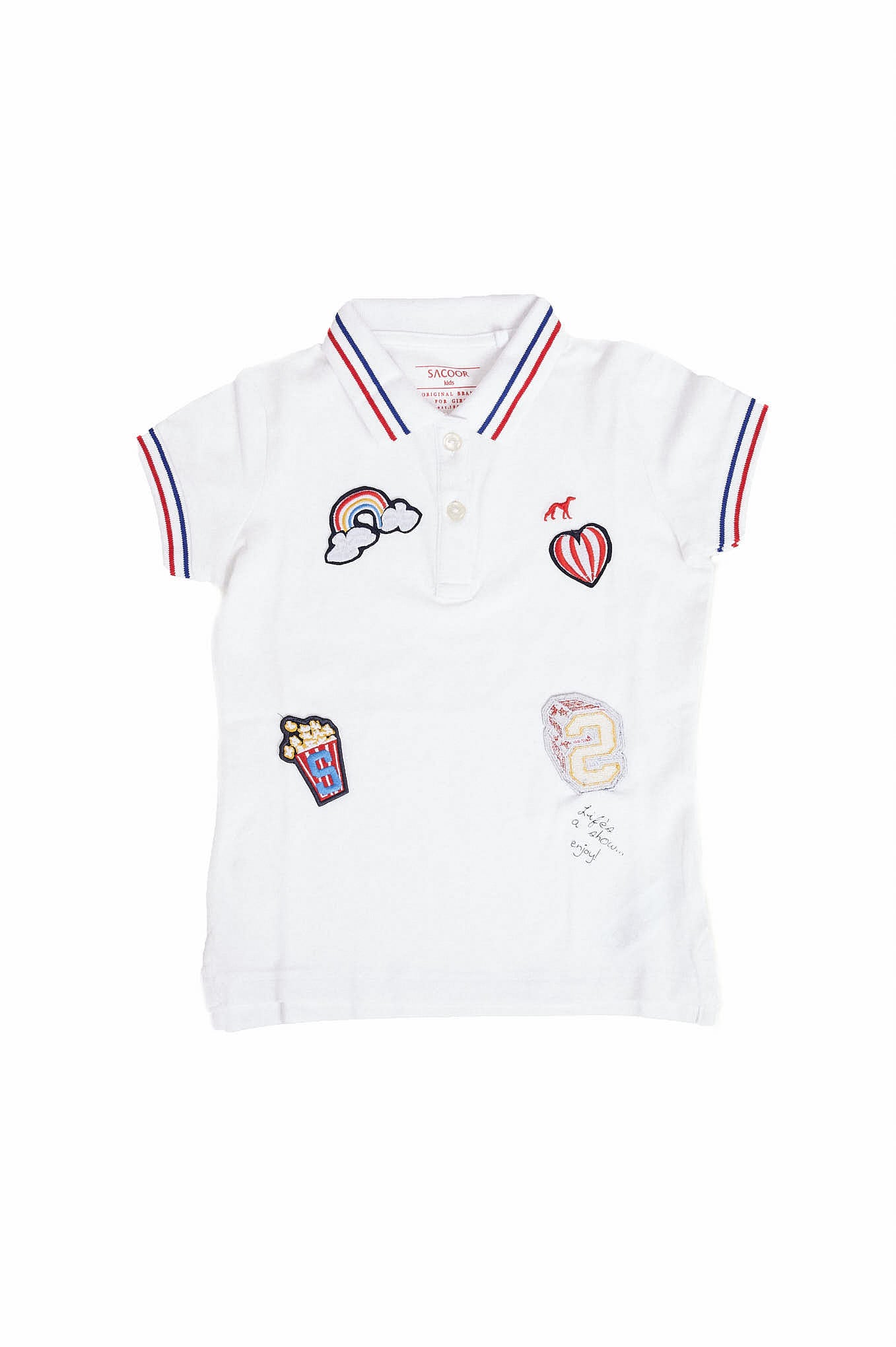 Piquet polo with "flip-over" badges with secret messages underneath. Features thin contrast colour stripes at rib collar and cuffs. Also has contrast colour cover tapes at side seam open slits.