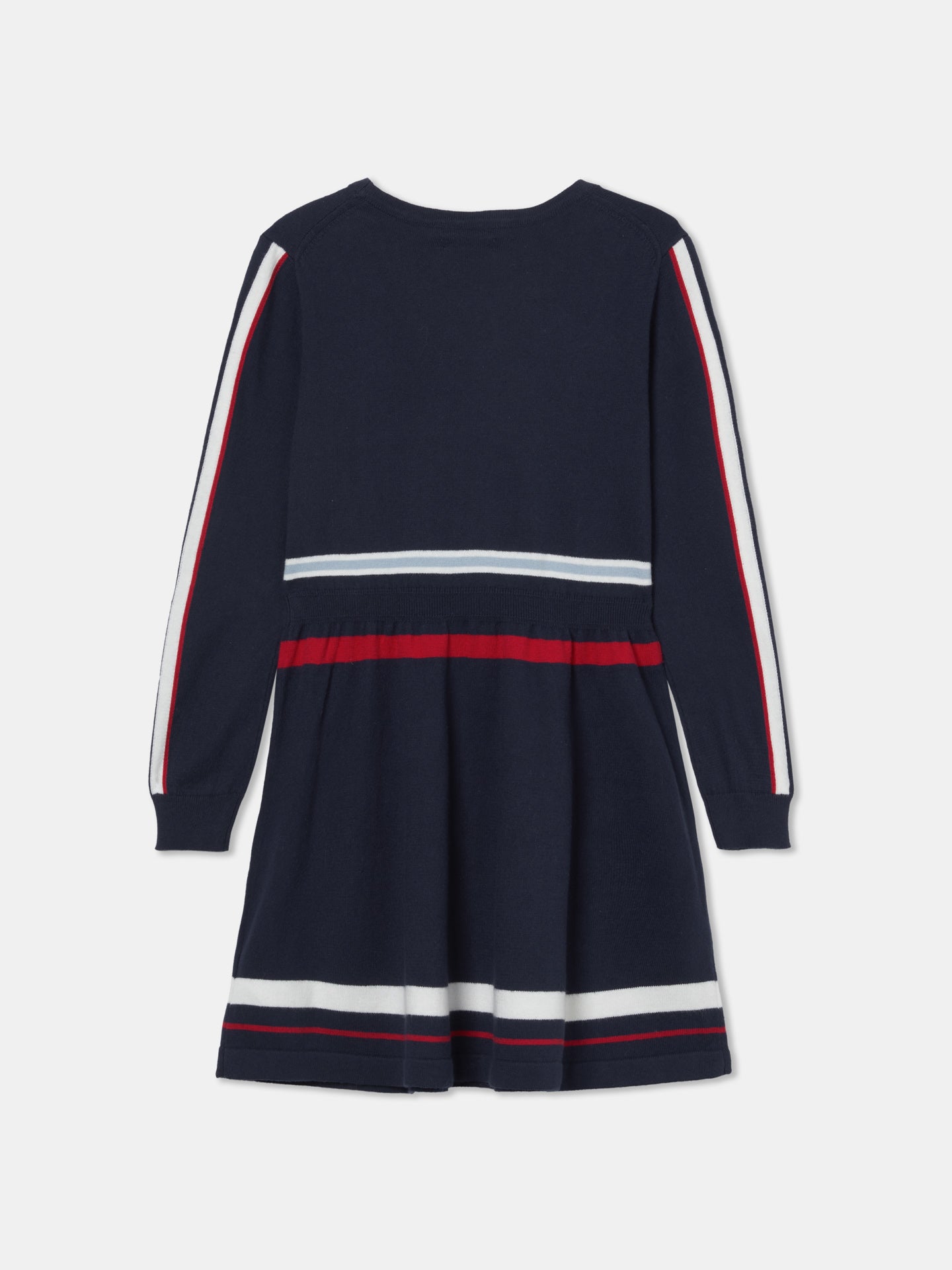 Long Sleeve Crew Neck Kintwear Dress made of 100% Cotton in plain colour thin knit with contrast colour stripes at waist, bottom and sleeves. Round-neck. Collar, cuffs and bottom with rib. Rich details such as rib at waist and logo embroidery in contrast colour.