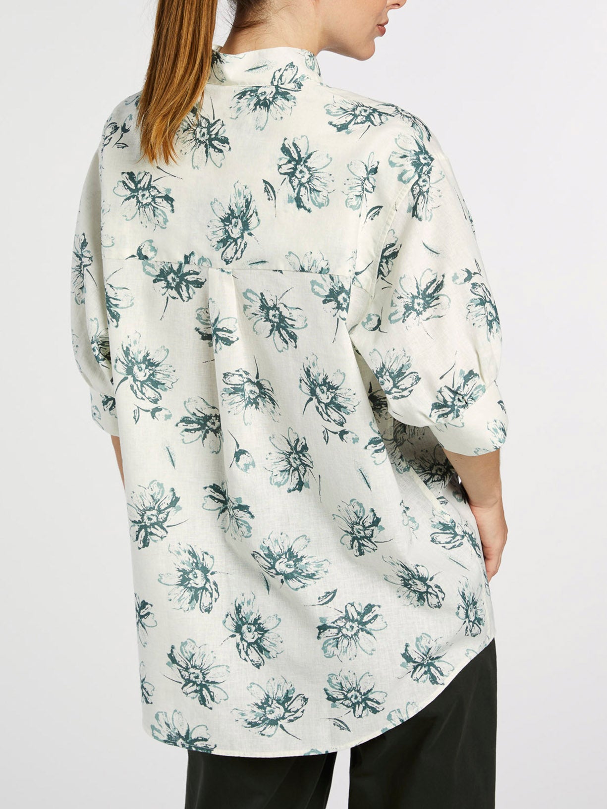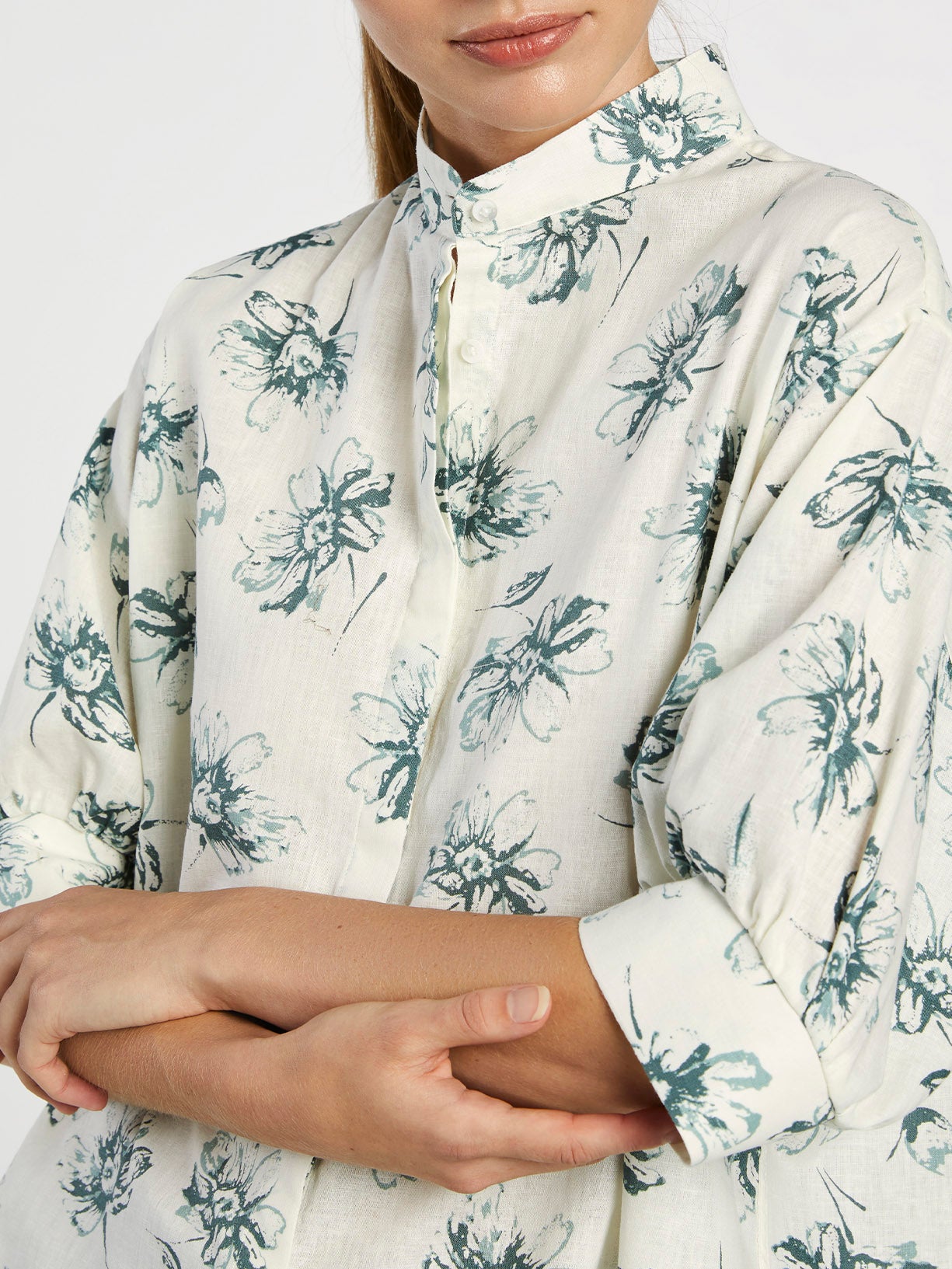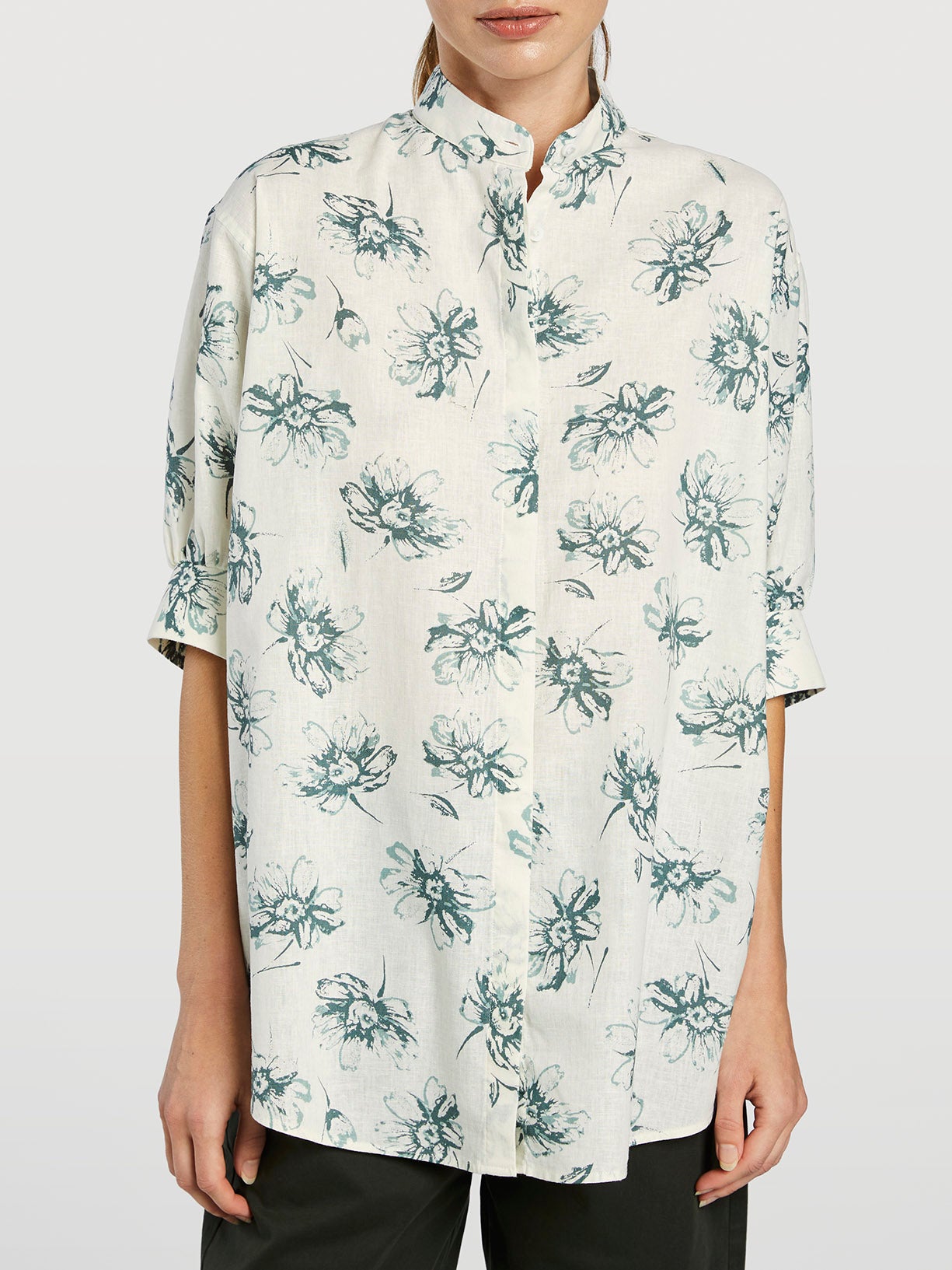 Mao Collar Shirt With Balloon Sleeves