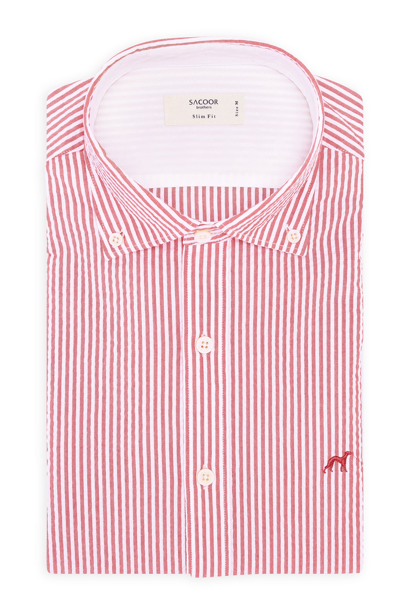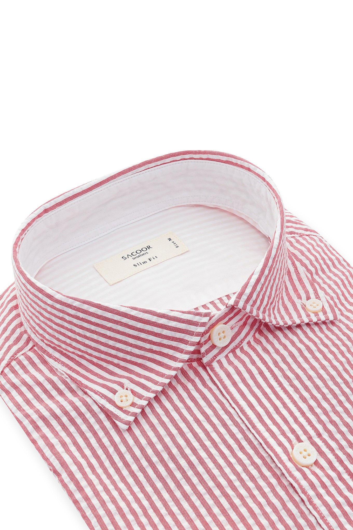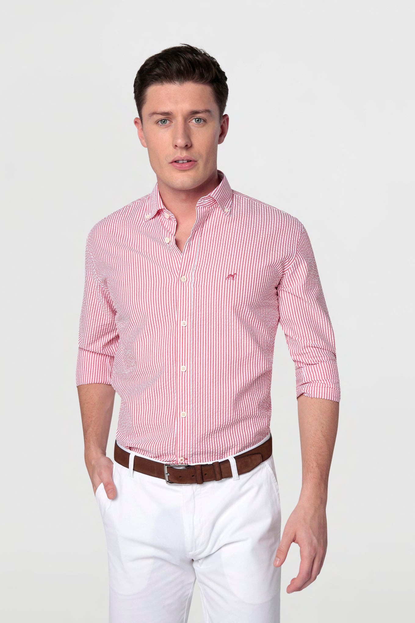 An unusual fabric. The seersucker fabric is light and slightly crinkled, making this shirt a unique and ideal piece for the new season. Made from 100% cotton and with a striped pattern, this is an excellent option to wear on a relaxed day by the sea or for lunch with friends.