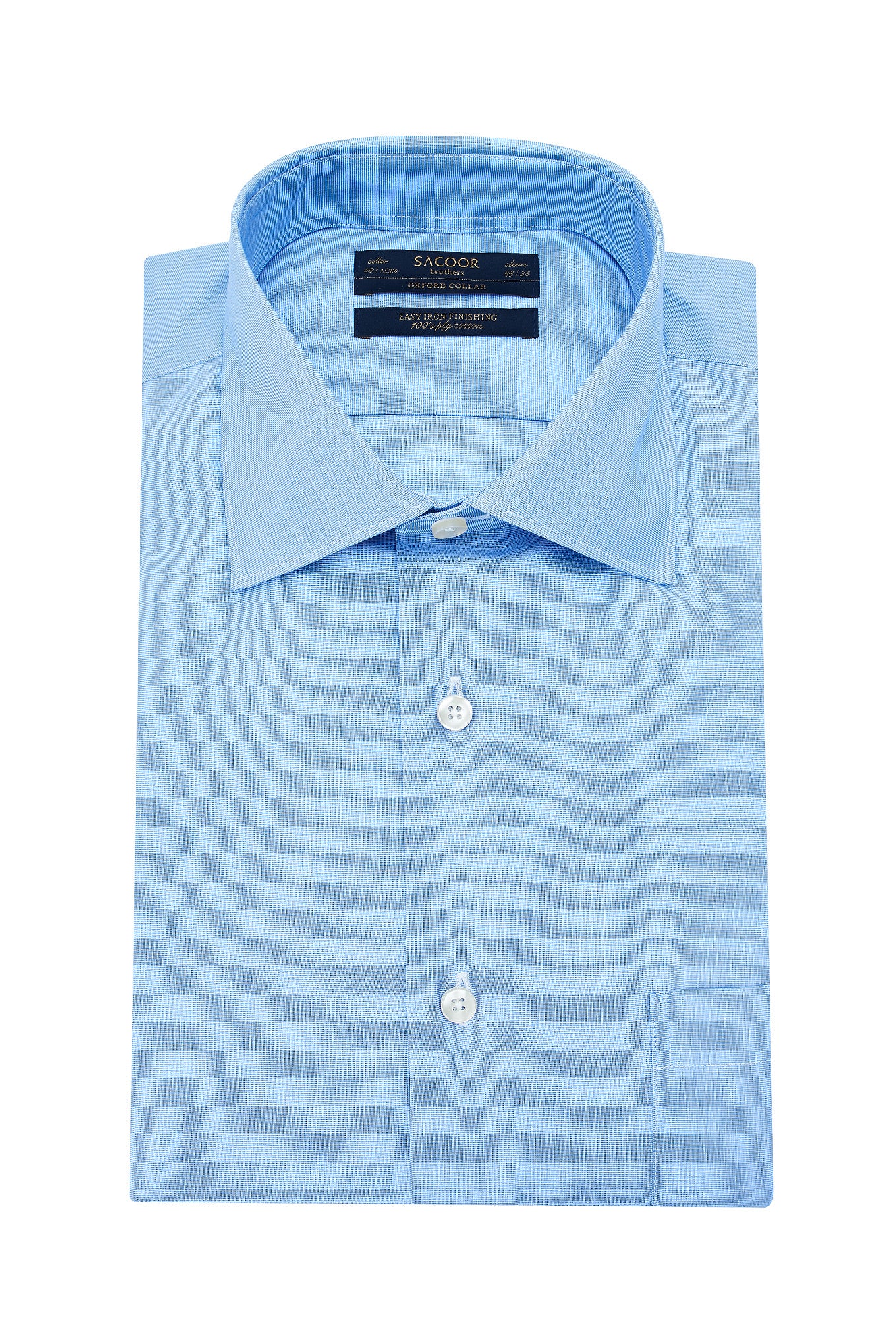 Men's classic shirt, very elegant, plain, softly textured. Open-collar with straps included. Chest pocket. English seams, more comfortable and for a quality finish. Side reinforcement of triangle seams. Cotton fabric, very easy to starch. Available in the online store Sacoor Brothers.The length of the back in the size 40 is of 30.70 in and the length of the sleeve is of 24.80. Check our Size Guide.