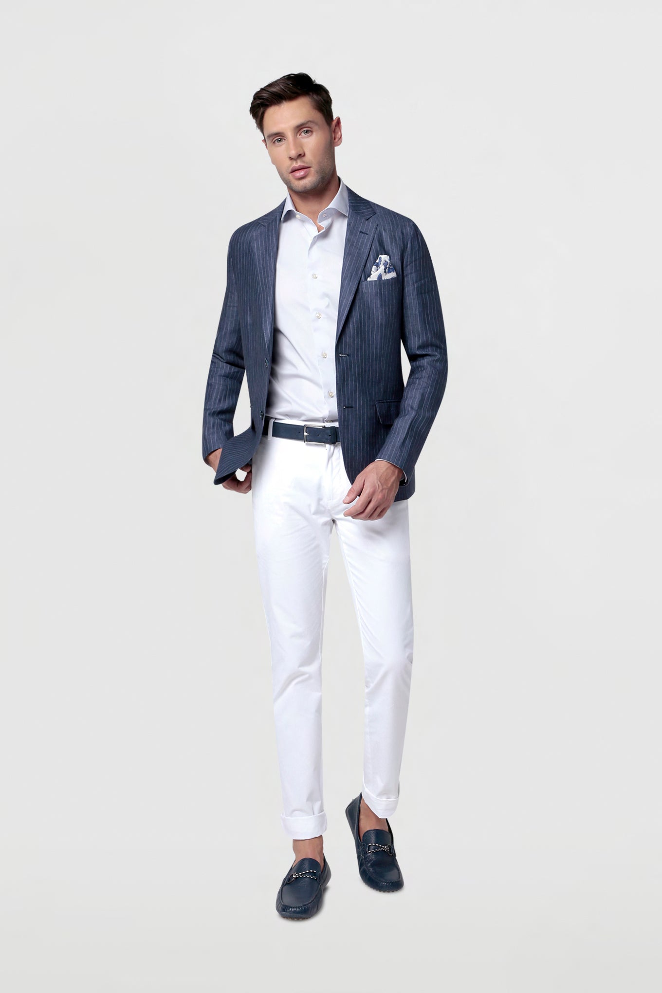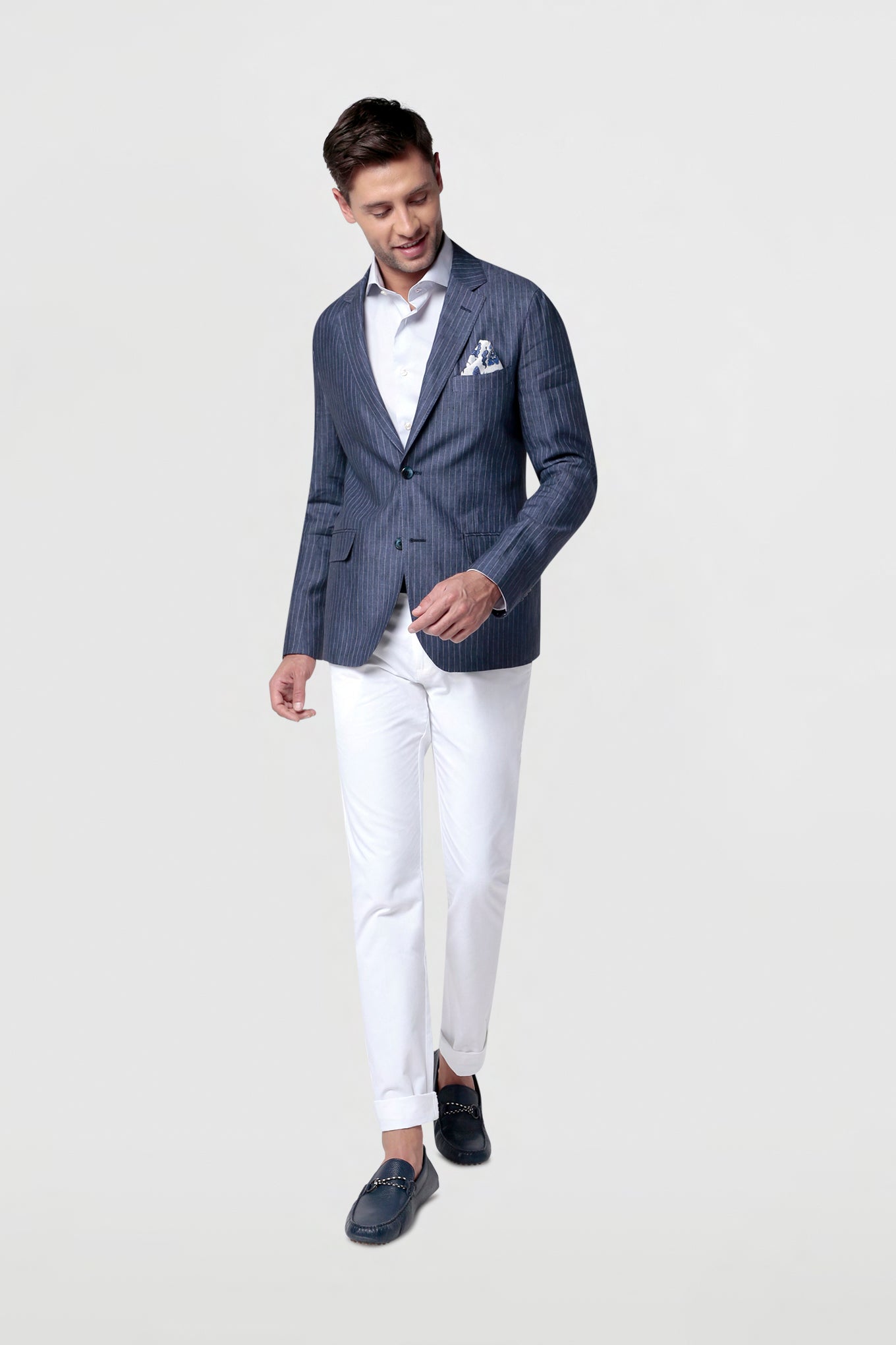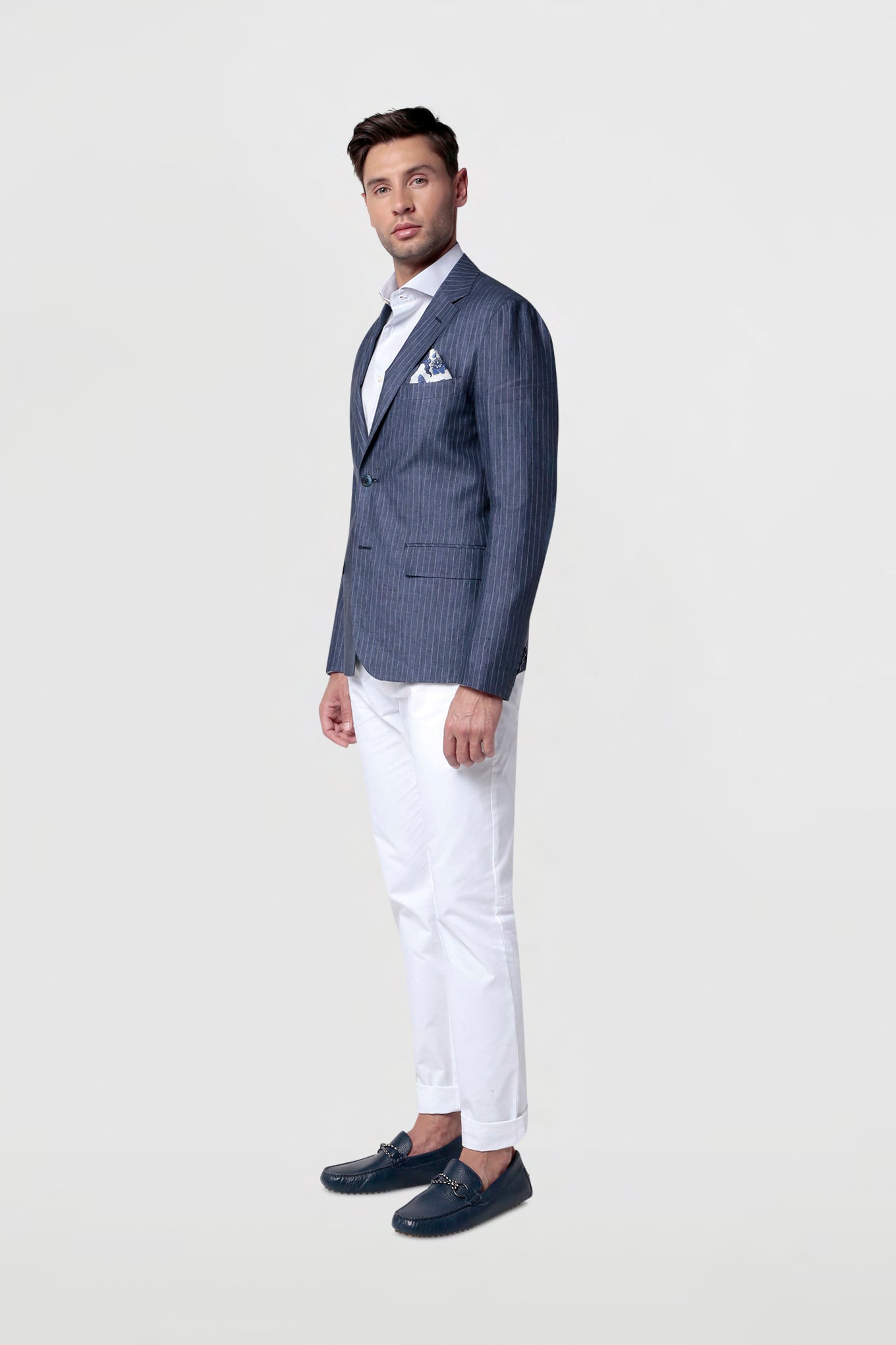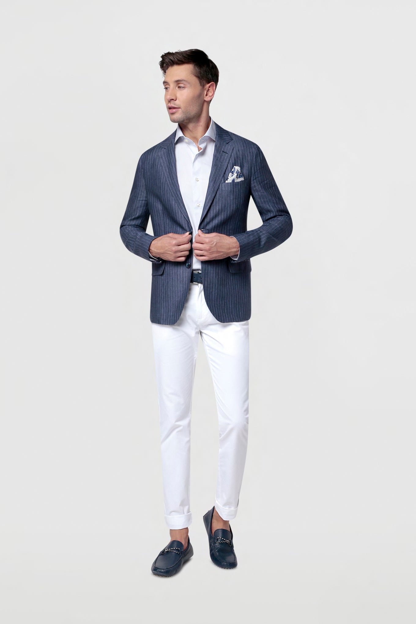 Classic blazer constructed in Wool, Silk & Linen for a softer and more comfortable feel. This blazer has notch lapel, 2 falp pockets, long sleeves with four-buttons cuffs, two back slits, half lining and several inside pockets. The slim fit is an updated version of the classic blazer, affording greater adaptability without losing breathability and comfort.