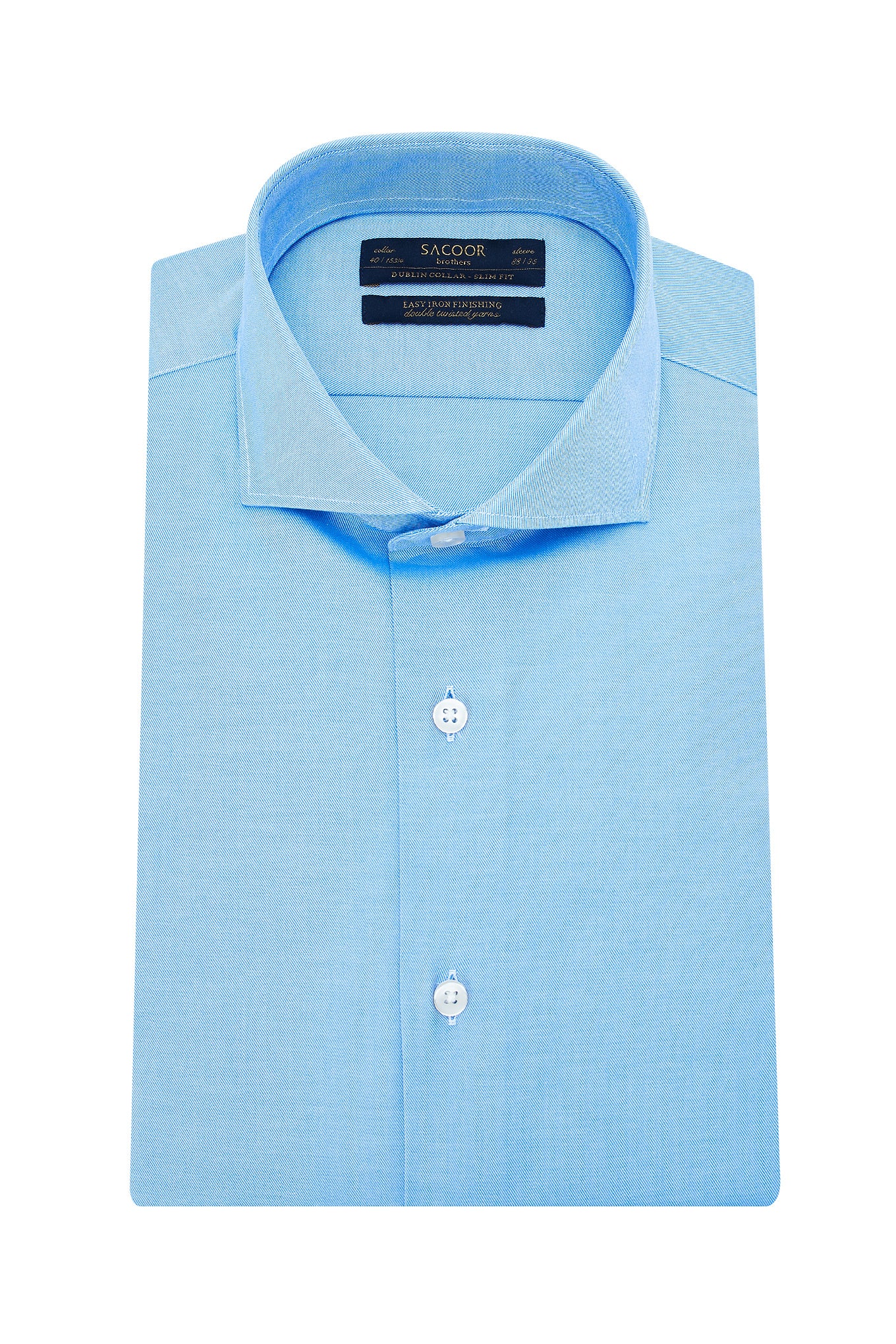 Men's shirt, classic cut. Very elegant, plain, soft textured. Open collar, stays included. English stitching, more comfortable and quality finish. Side support from triangular seams. Cotton fabric, with twisted yarns, for better resistance and durability. Very easy to iron. Available at Sacoor Brothers online store. Size 40 back length is 78 cm and sleeve length is 63 cm. See our Size Guide.