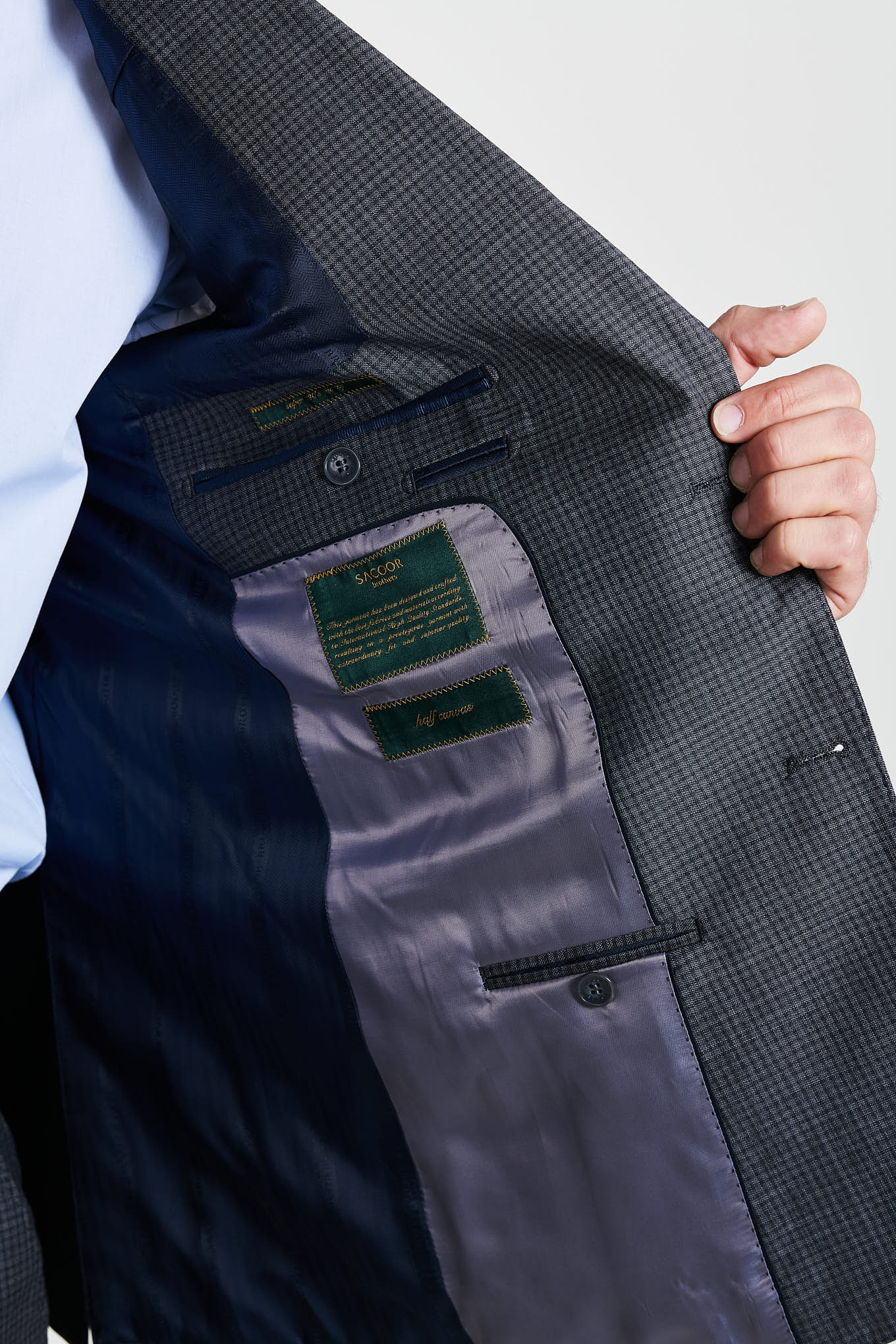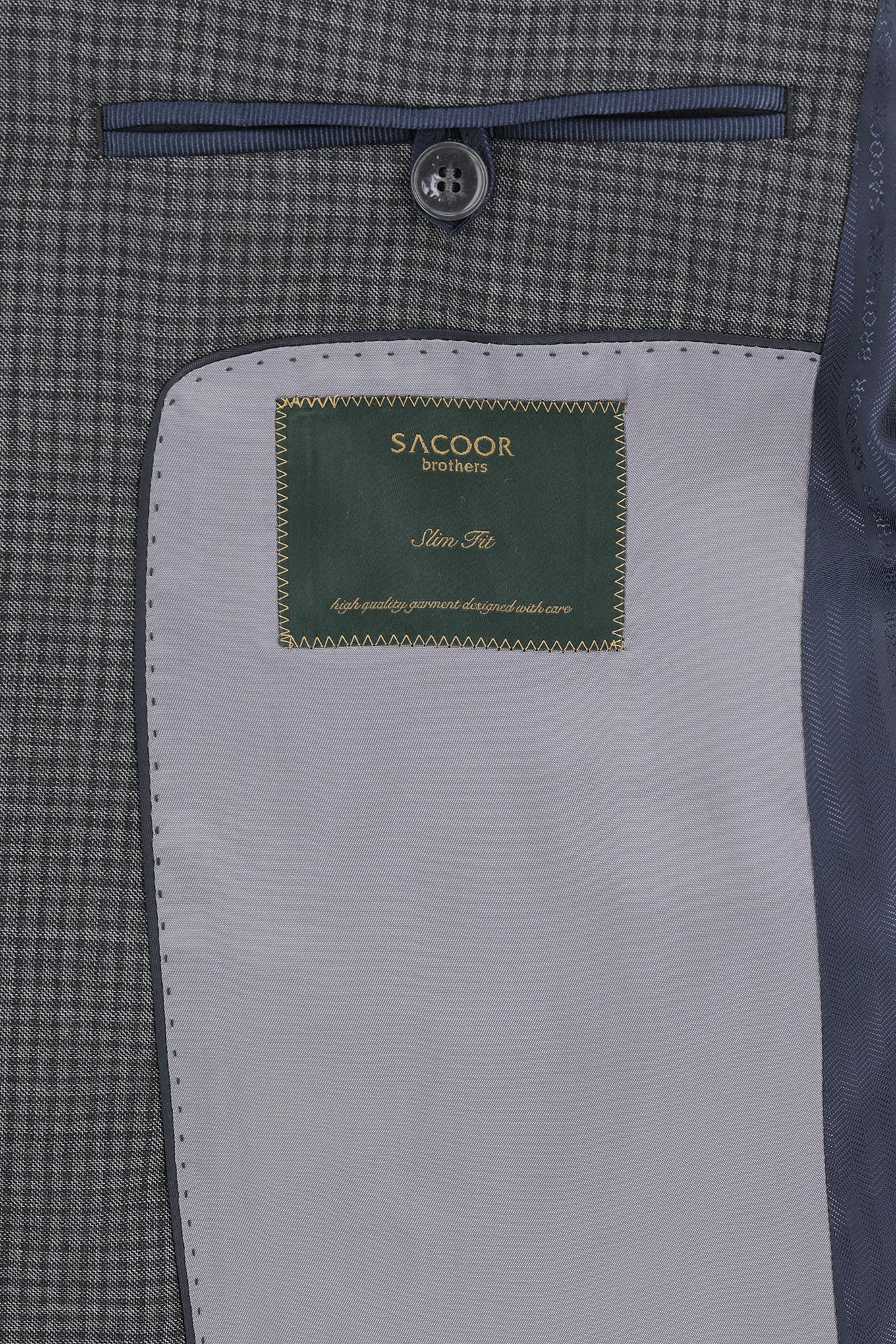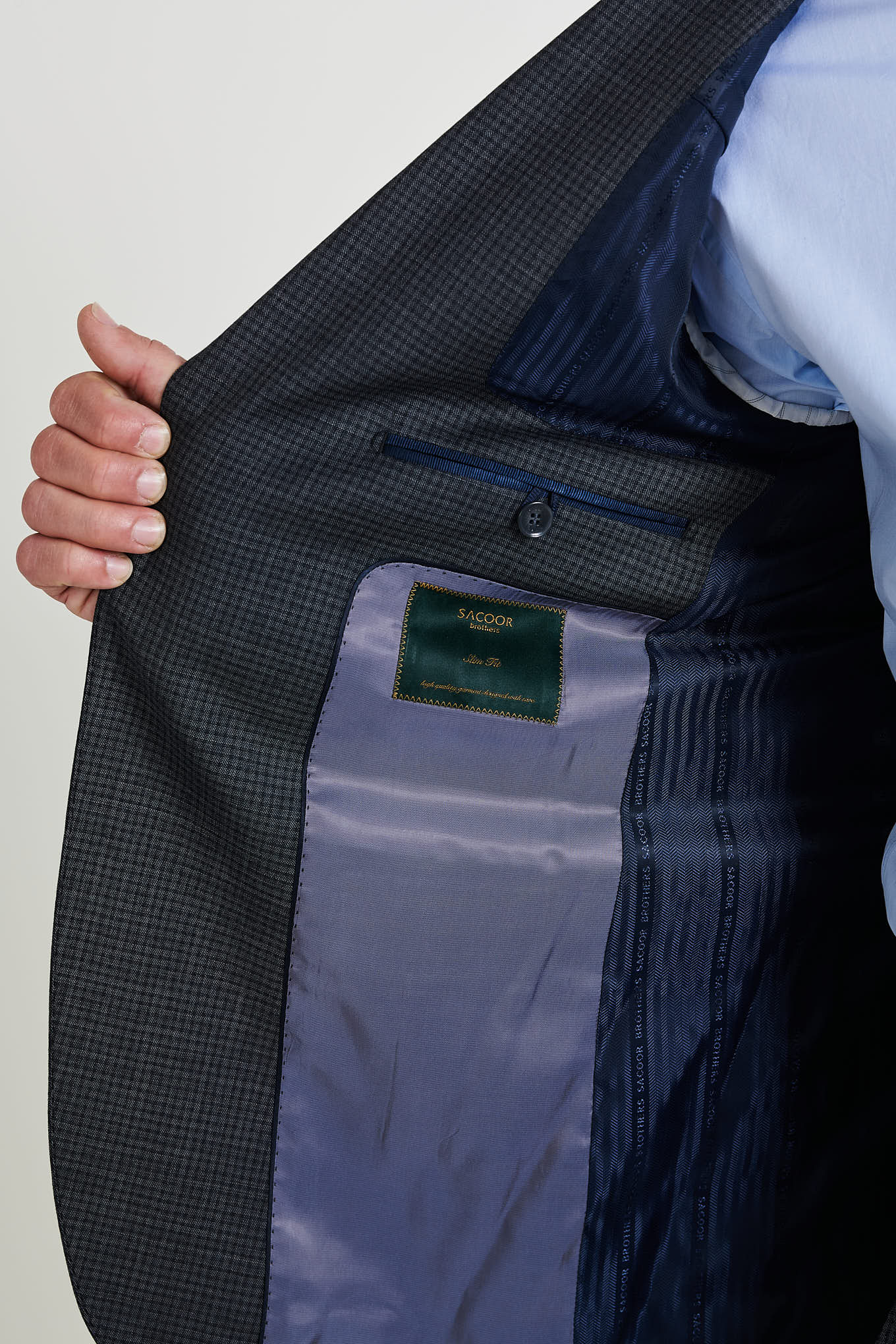 Sacoor elegance. This elegant suit needs no introduction: a perfect slim cut, the ideal fabric, the right colour, all details that reflect the essence of a true gentleman. 100% wool fabric, for a natural and elegant touch, with maximum comfort.