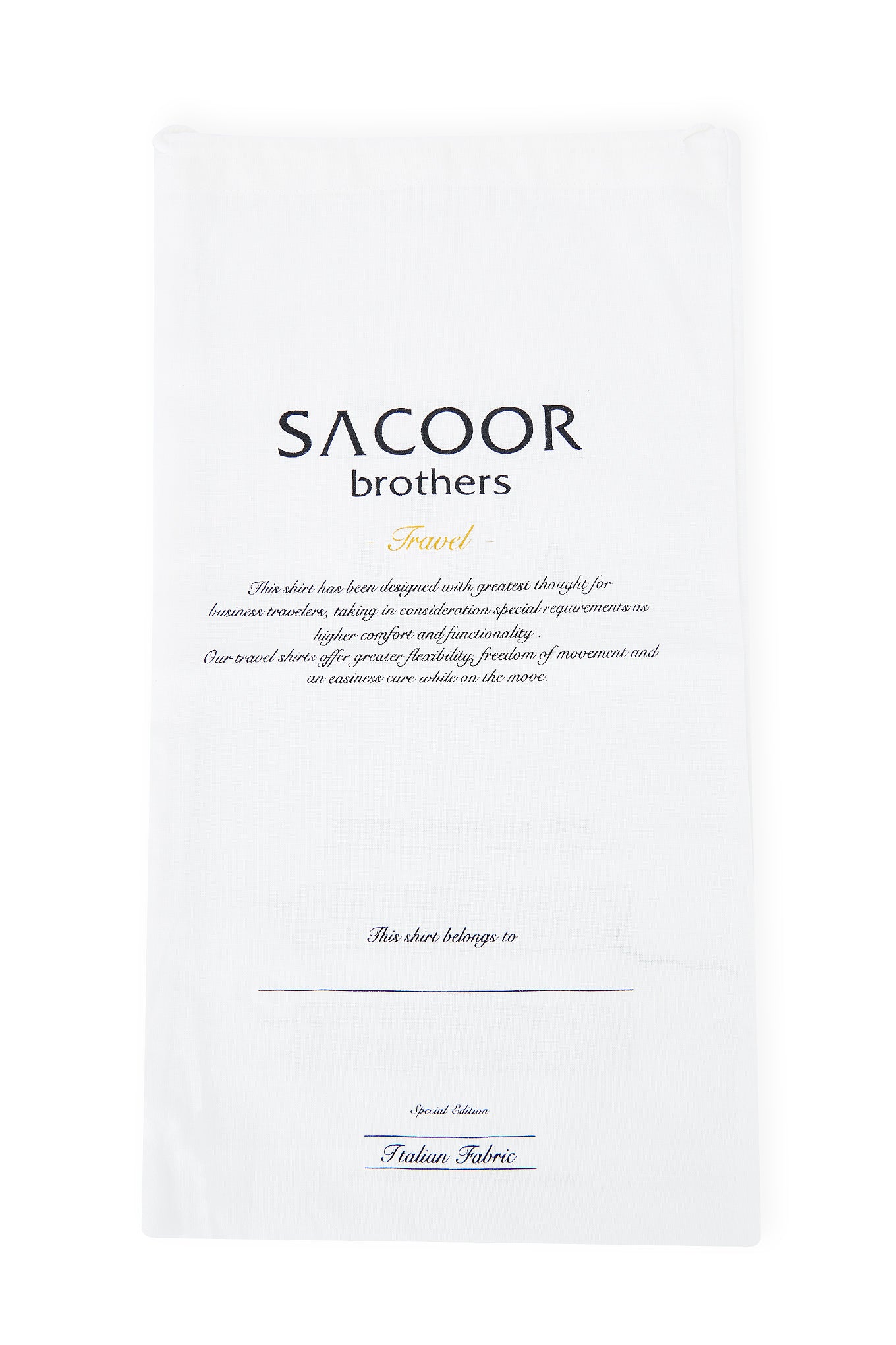 Men's shirt, classic cut, plain. Closed collar with elongated points and stays included. English stitching, more comfortable and quality finish. Cotton and elastane fabric for greater comfort and flexibility. Handy fabric string bag included. Travel edition shirt, designed for businessmen on the go. We want our Travel collection to offer freedom of movement, comfort and easy maintenance. Available at Sacoor Brothers online store. Size 40 back length is 78 cm and sleeve length is 63 cm. See our Size Guide.
