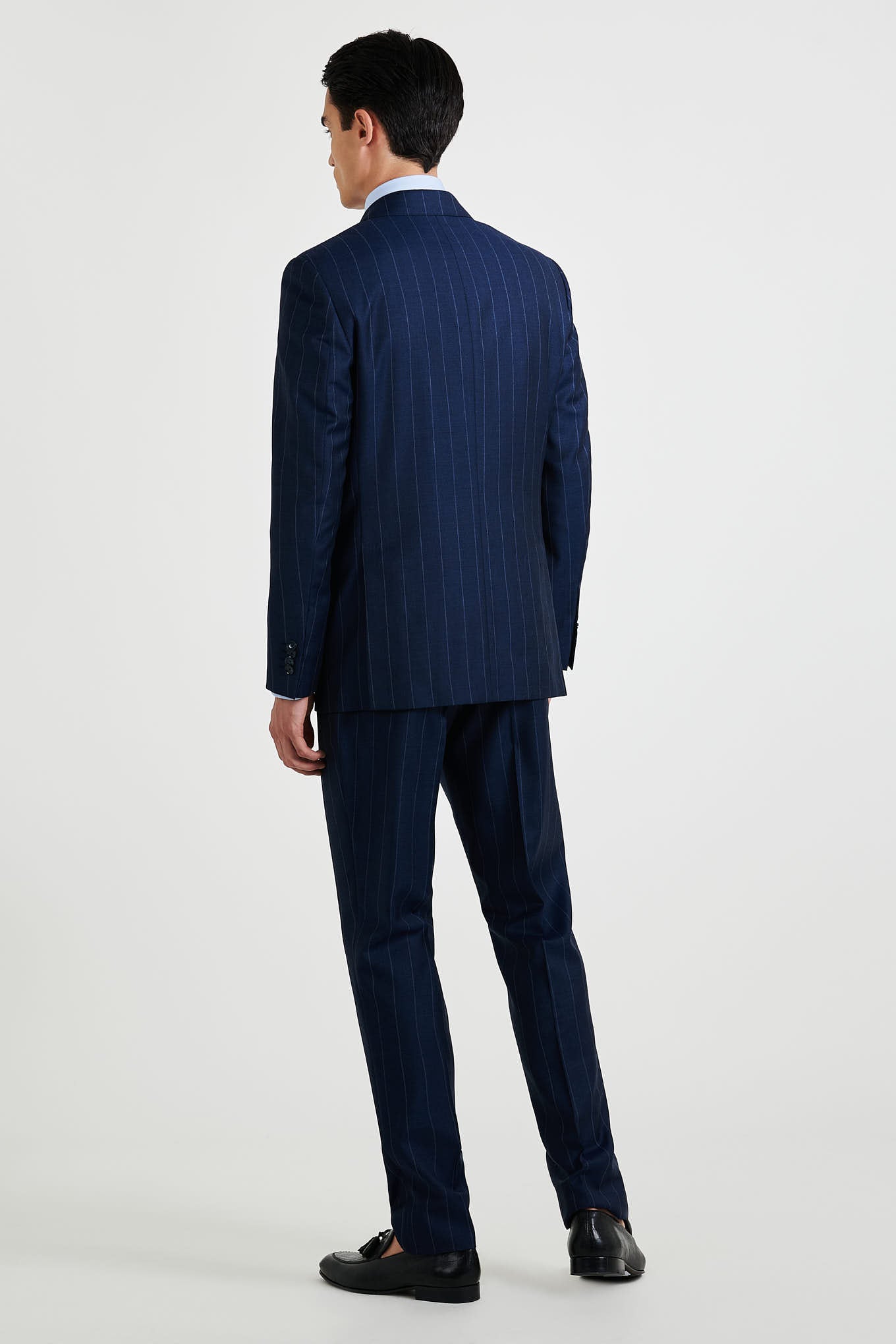 A comfortable, refined workwear ensemble in 100% Wool made in Italy, providing it a fresh touch without losing breathability and comfort due to it's half-canvas construction. This two-piece suit in slim-fit creates a relaxed silhouette that is ideal for all profiles. This versatile two-piece suit features a trouser with pleats, two-button jacket with large peak lapel and close buttonhole, long sleeves with four-button cuffs, two back slits, full lining and several inside pockets.