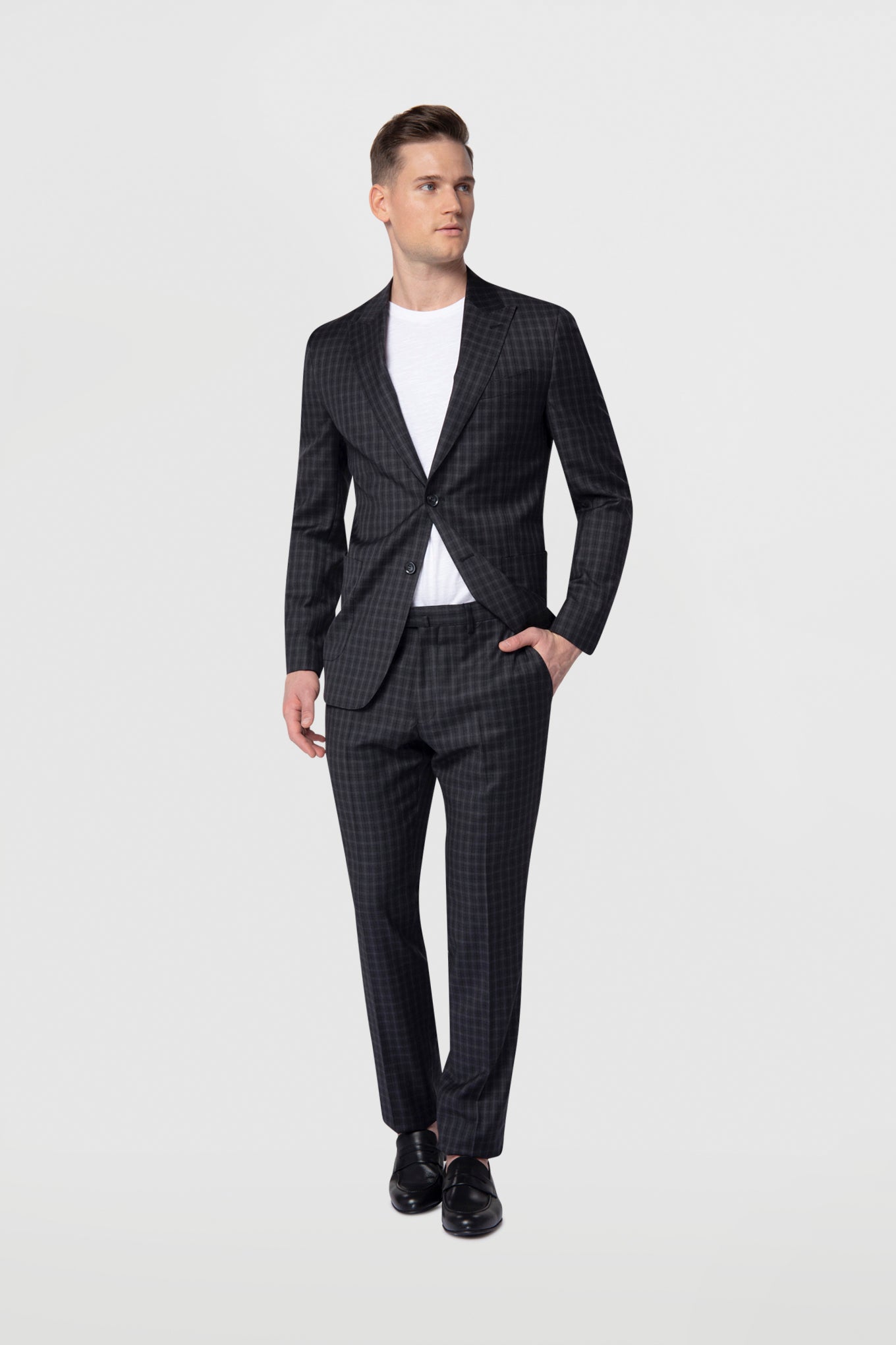A comfortable, refined workwear ensemble in 100% Wool - Super 130's, providing it a fresh touch without losing breathability and comfort due to it's half-canvas construction. This two-piece suit in slim-fit creates a relaxed silhouette that is ideal for all profiles. This versatile two-piece suit features a trouser with clock pocket, two-button jacket with peak lapels and close buttonhole, long sleeves with four-button cuffs, two back slits, full lining and several inside pockets.
