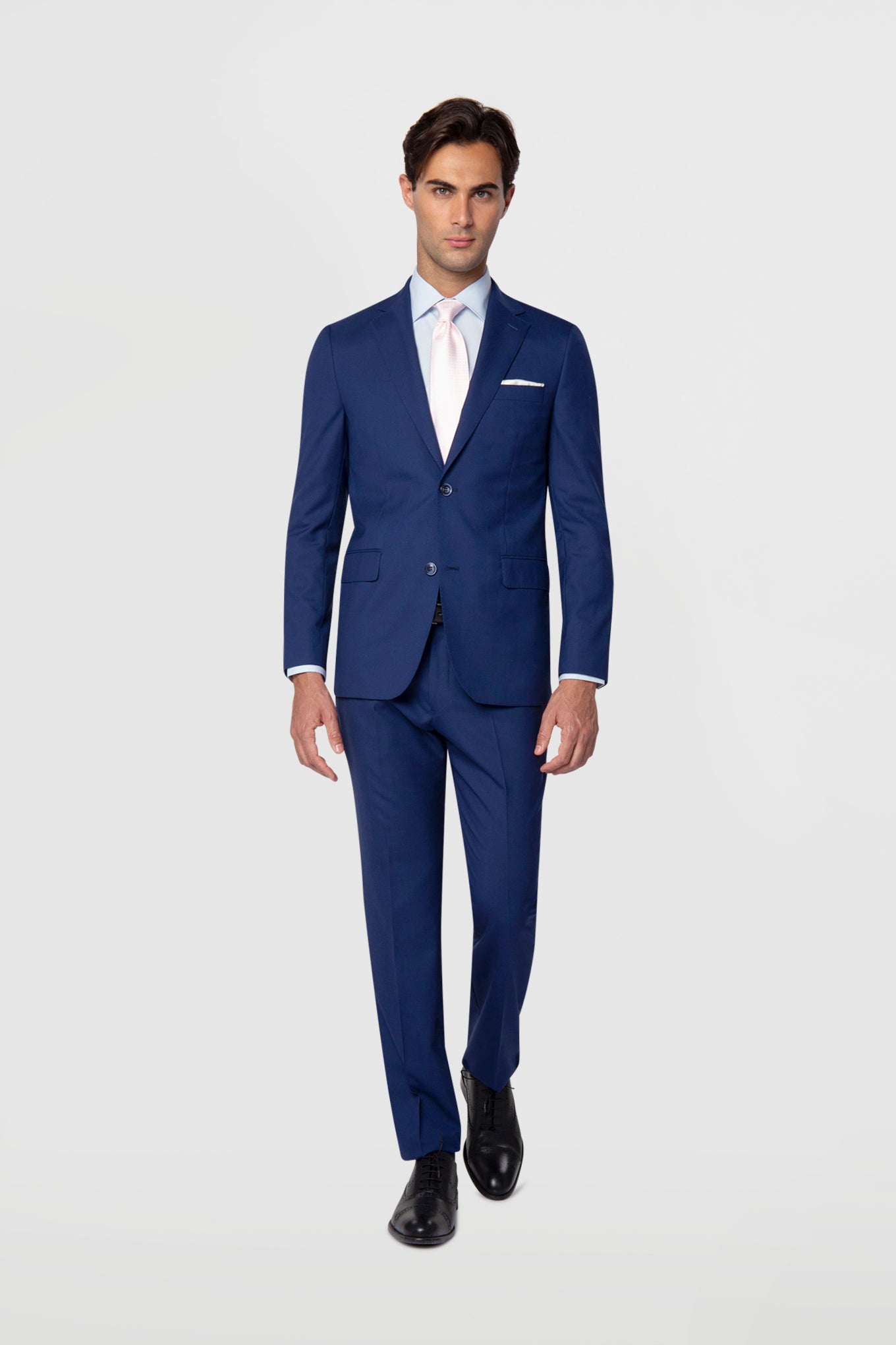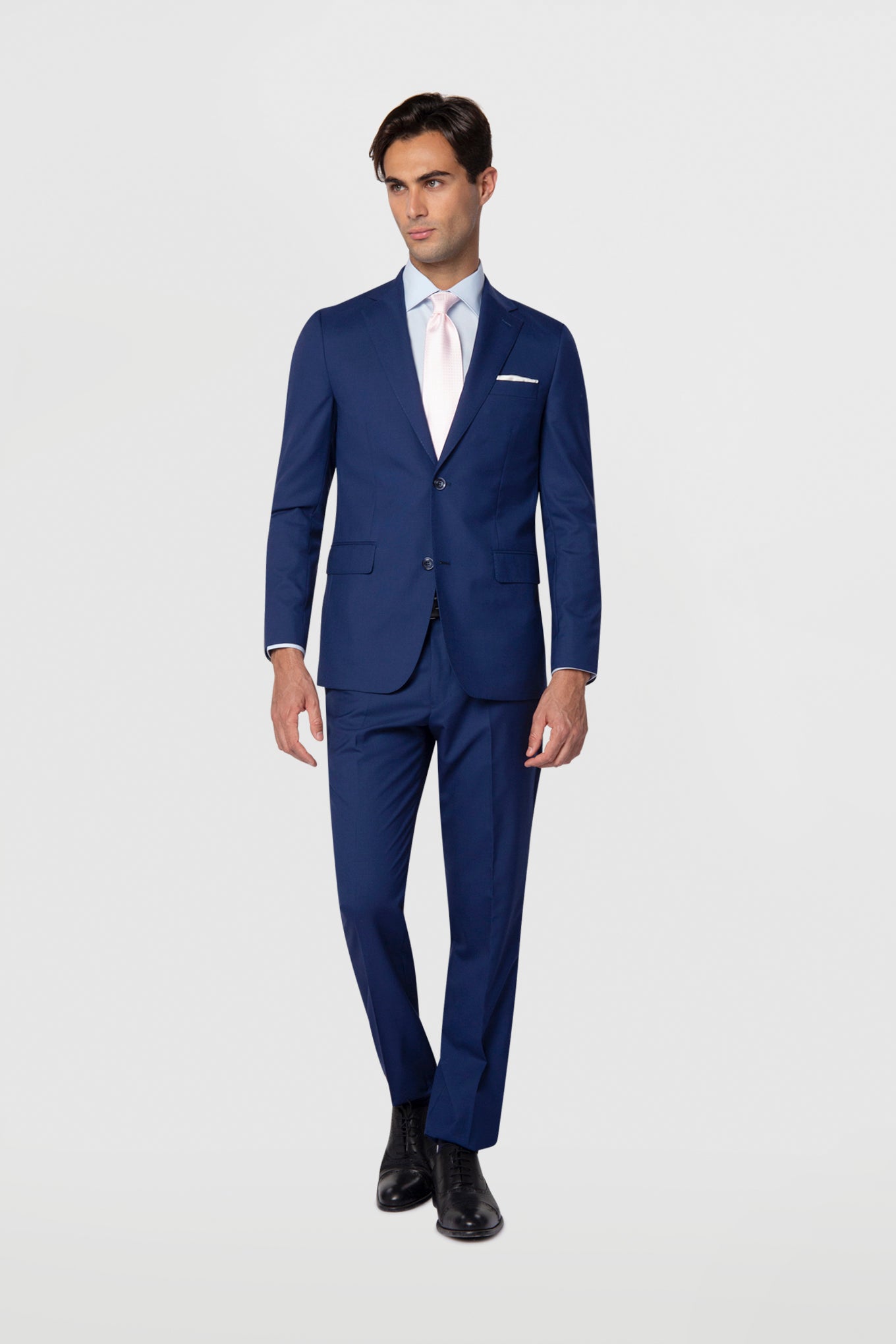 A comfortable, refined workwear ensemble in 100% Wool - Super 130's, providing it a fresh touch without losing breathability and comfort due to it's half-canvas construction. This two-piece suit in regular-fit (Drop 5) creates a relaxed silhouette that is ideal for all profiles. This versatile two-piece suit features a trouser with clock pocket, two-button jacket with notch lapels and close buttonhole, long sleeves with four-button cuffs, two back slits, full lining and several inside pockets.