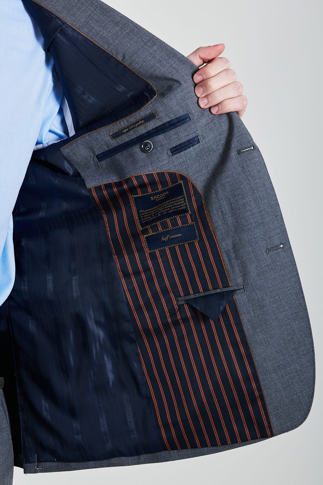 Pieces purchased at Sacoor Brothers benefit from a free in-store tailoring service. Just bring the item in, and our tailors will adjust the clothes to your body, ensuring a perfect fit. This way, you can enjoy clothing that is truly tailored to you.