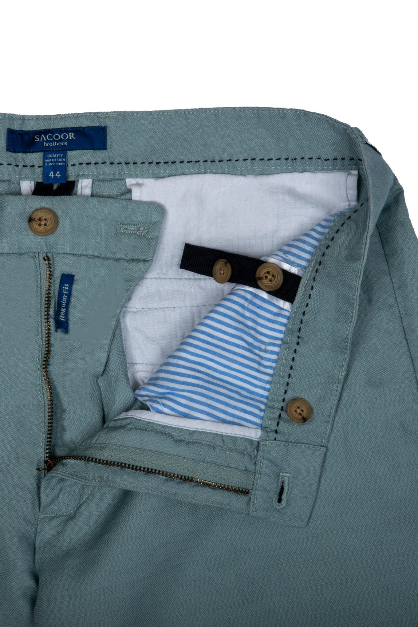 Made to feel luxurious and comfortable, our Men's Regular Fit Casual Chino Trousers are made of 66% Linen, 32% Cotton, and 2% Spandex.