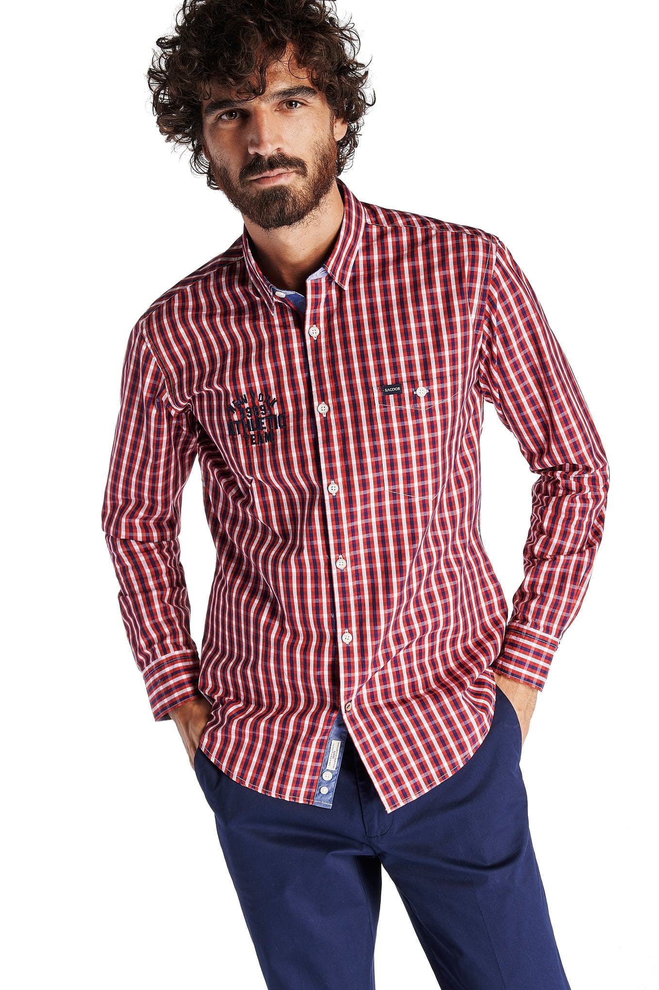 Men's shirt, checkered pattern. Different fabric tape in the alignment of the buttons, on the back of the neck and open cuffs, where there is a 1989 reference, year of birth of the Sacoor brand. Customization of the brand in the chest pocket and sports embroidery on the other side. English seams, more comfortable and for a quality finishing. Side reinforcement of triangular seams. Garment of the "Rugby Club" line, made in Portugal. A sportier version, always with elegance. Available at the Sacoor Brothers online store.