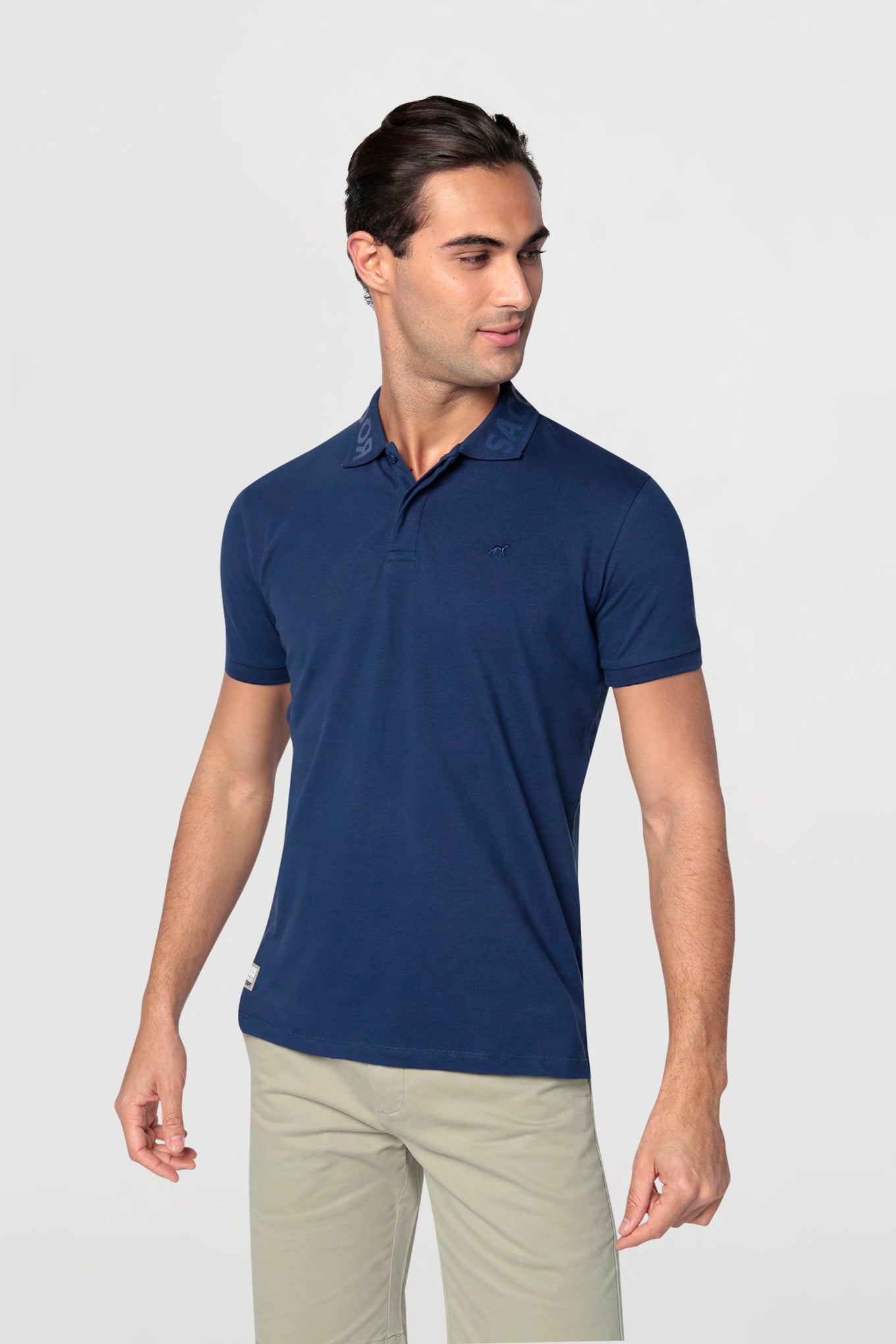 Proudly Sacoor. Some simple items stand out for their elegance. This is the case with this blue polo shirt with the Sacoor Brothers name on the collar. An item that reflects the sophisticated style of Sacoor, while being versatile and timeless. 95% cotton and 5% elastane for maximum comfort.