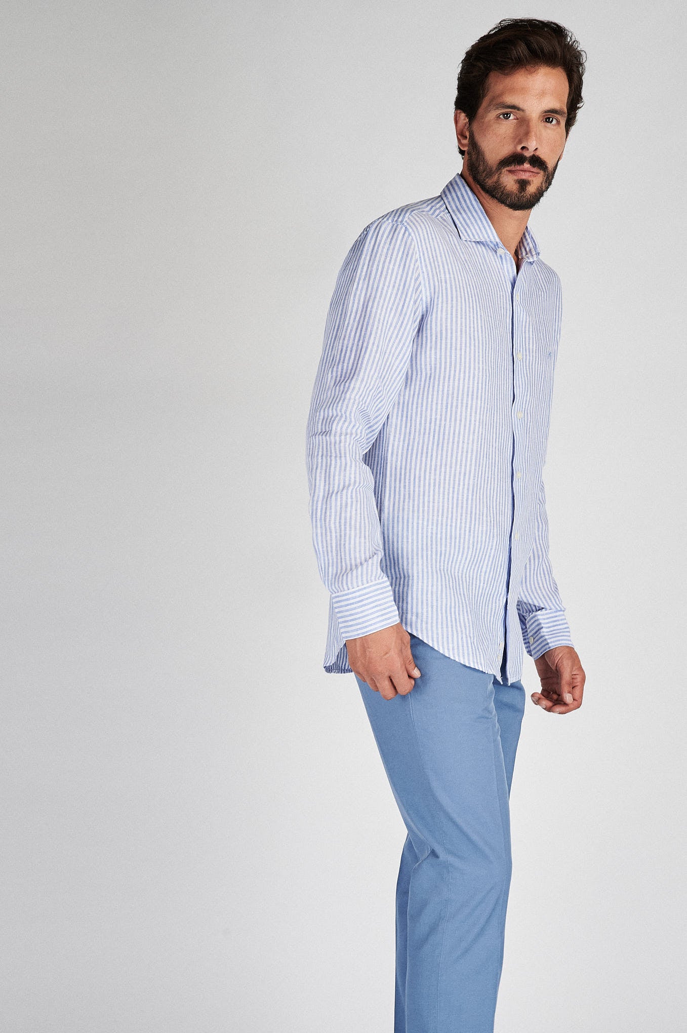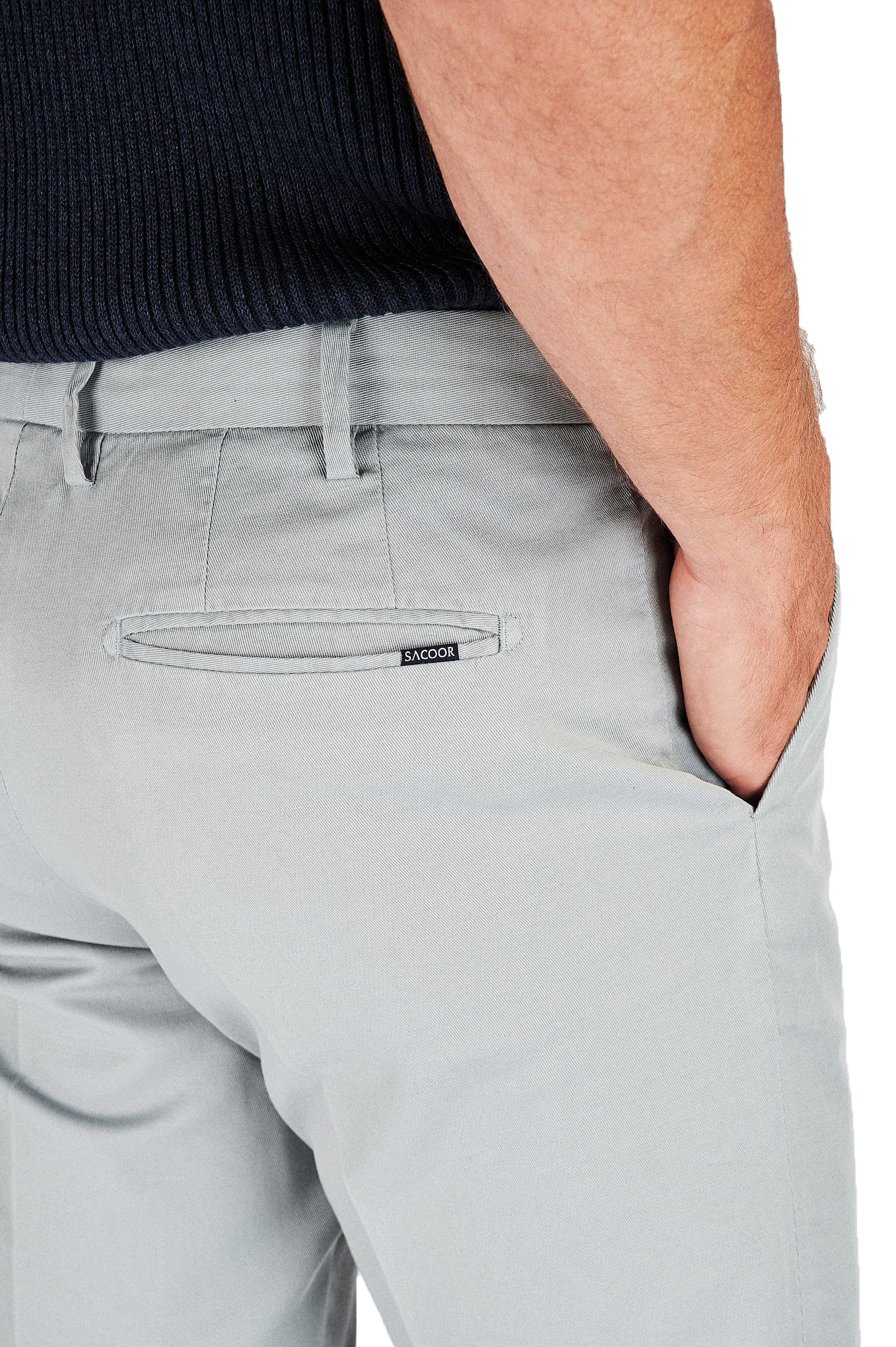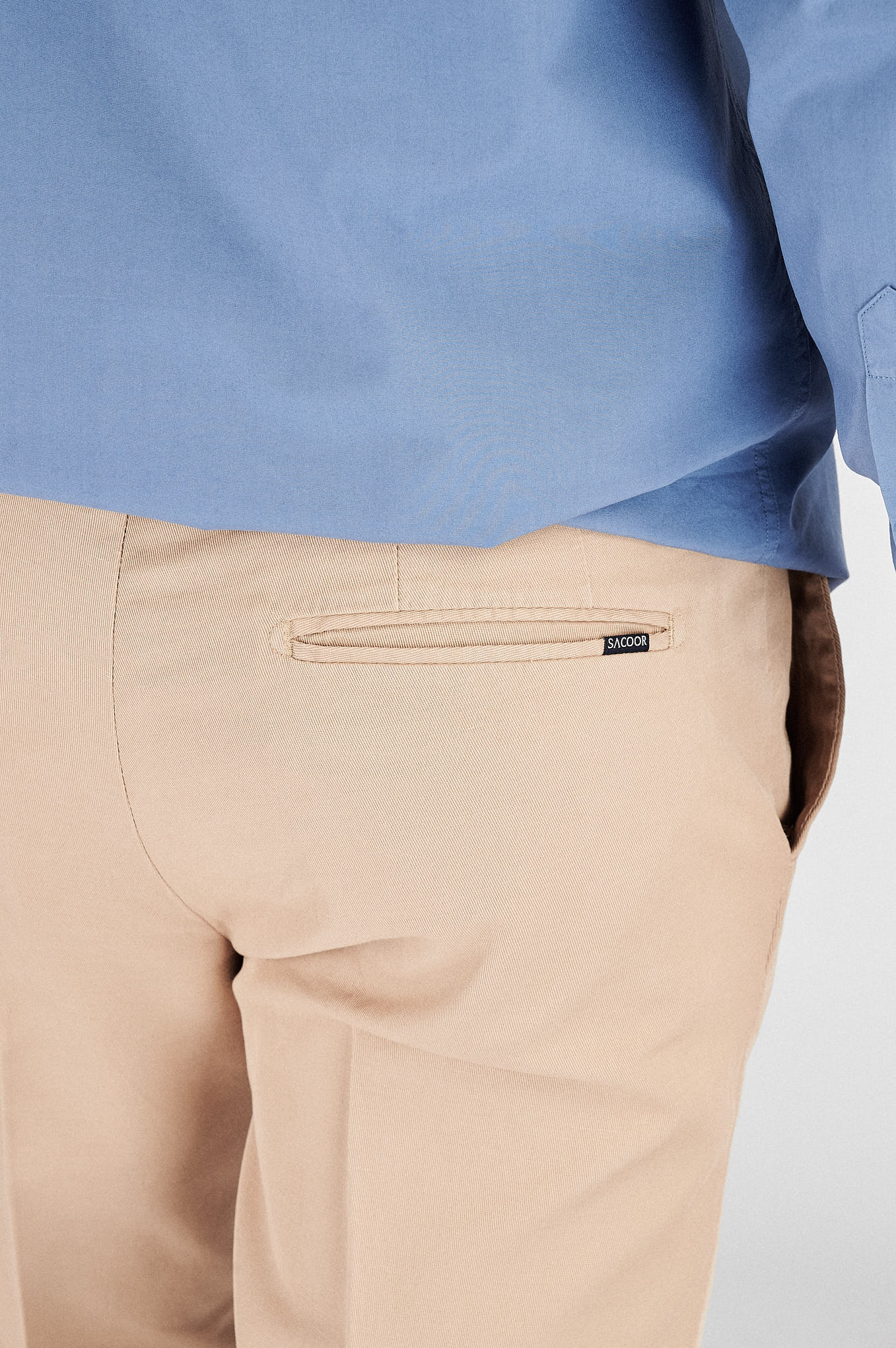 Men's chino trousers,plain.versatile and confortable.Trousers with reinforced waistband and loops.With zip and buttons,have in the interior a commemorative embroidery of Sacoor's 30 years.Side pockets and in the back part. Leg end to finish in fold. While the linen gives them lightness, the cotton gives comfort and the elastane offers greater freedom of movement.With a special dyeing technique, for an unique tone. Available at Sacoor Brothers online store.