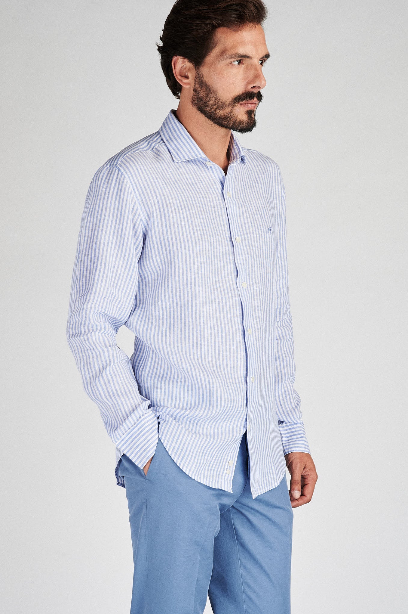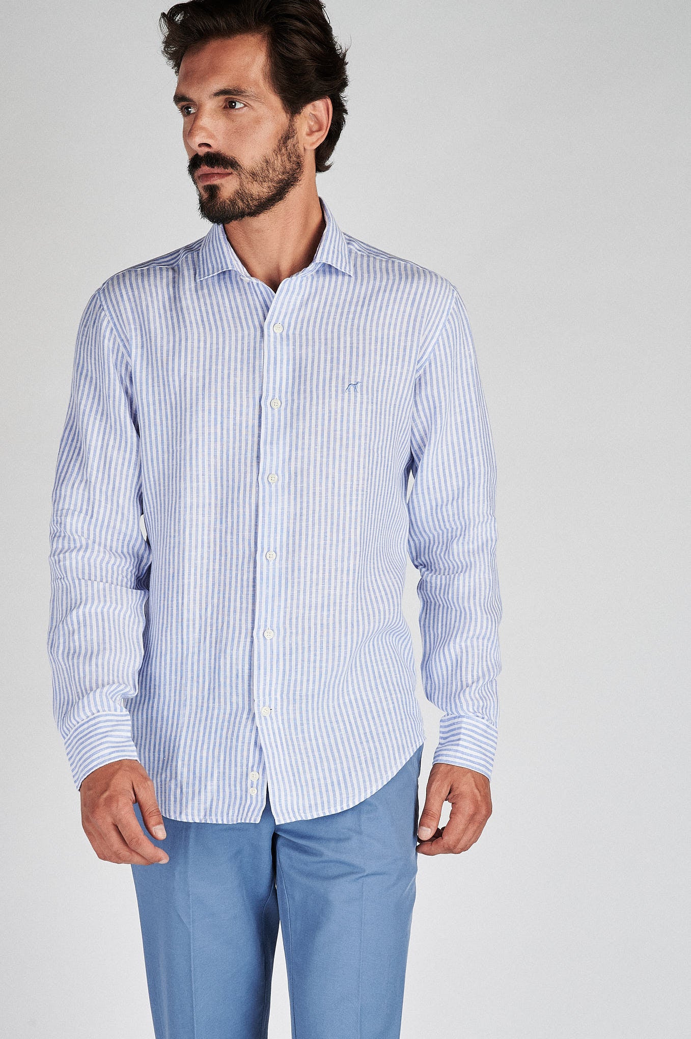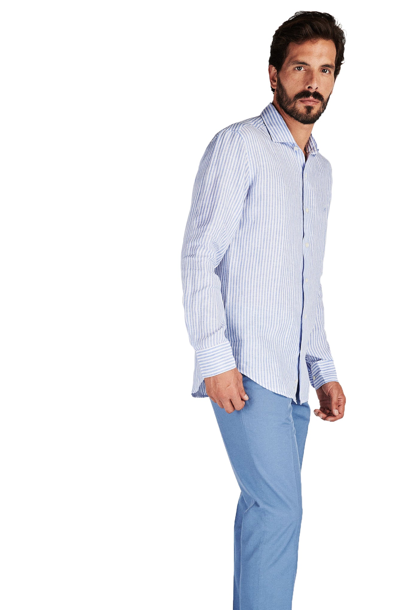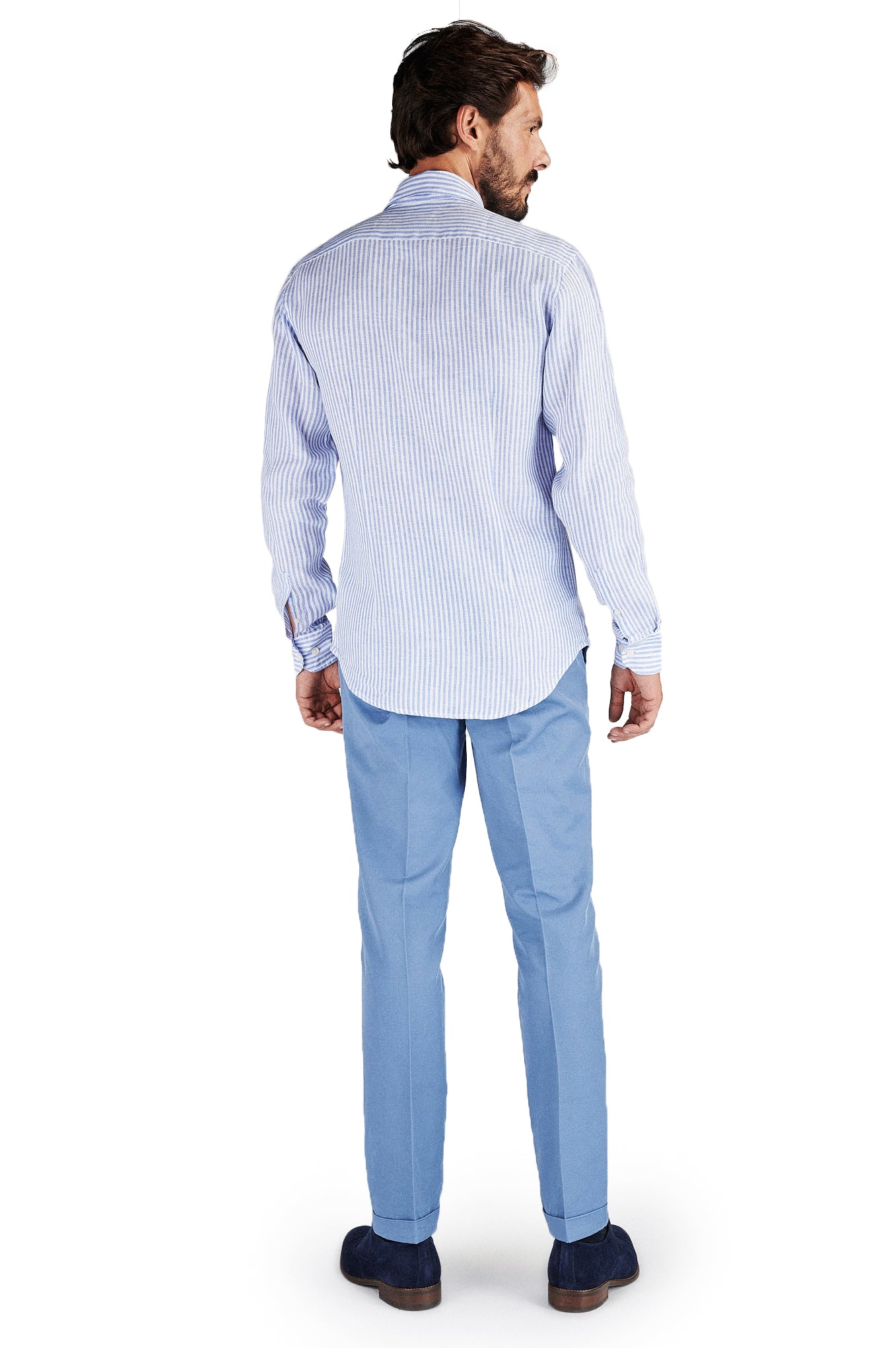 Men's chino trousers,plain.versatile and confortable.Trousers with reinforced waistband and loops.With zip and buttons,have in the interior a commemorative embroidery of Sacoor's 30 years.Side pockets and in the back part. Leg end to finish in fold. While the linen gives them lightness, the cotton gives comfort and the elastane offers greater freedom of movement.With a special dyeing technique, for an unique tone. Available at Sacoor Brothers online store.