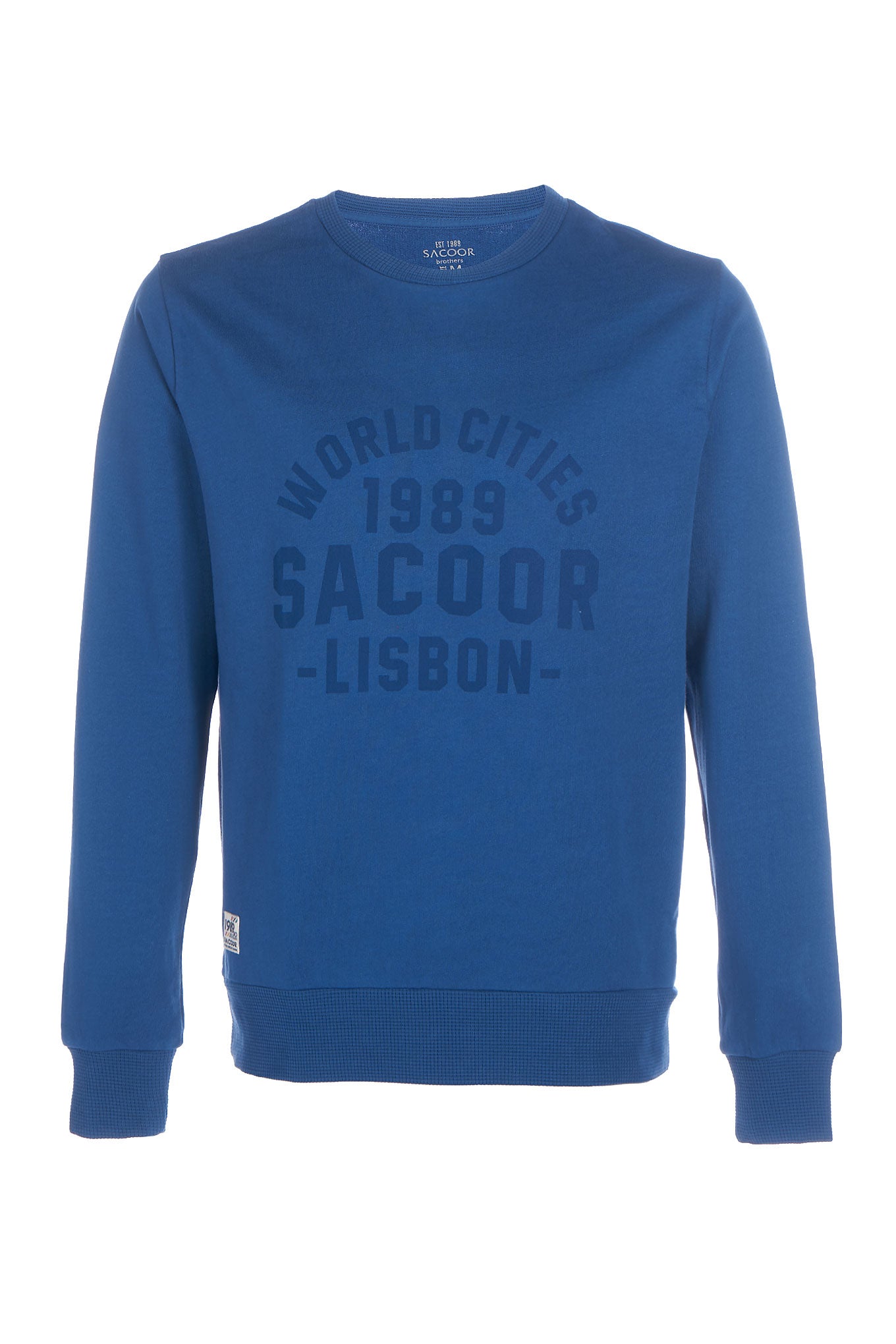 Men's sweatshirt, relaxed style, ideal for more casual occasions. Rounded neckline . Textured contrasting finishes on the neckline, cuffs and base. Sacoor print on the front inspired special edition "Sacoor Cities", with reference to Kuala Lumpur and 30 years of the brand.