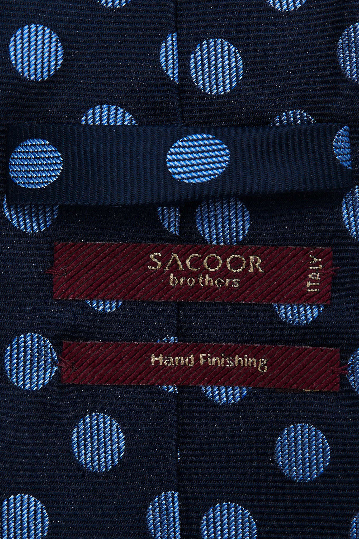 Classic men's tie with an elegant pattern of mixed balls on a plain background. This men's tie is made of pure silk, combining elegance and quality. With personalised lining. Hand-finished in Italy. 8 cm wide at the widest part.