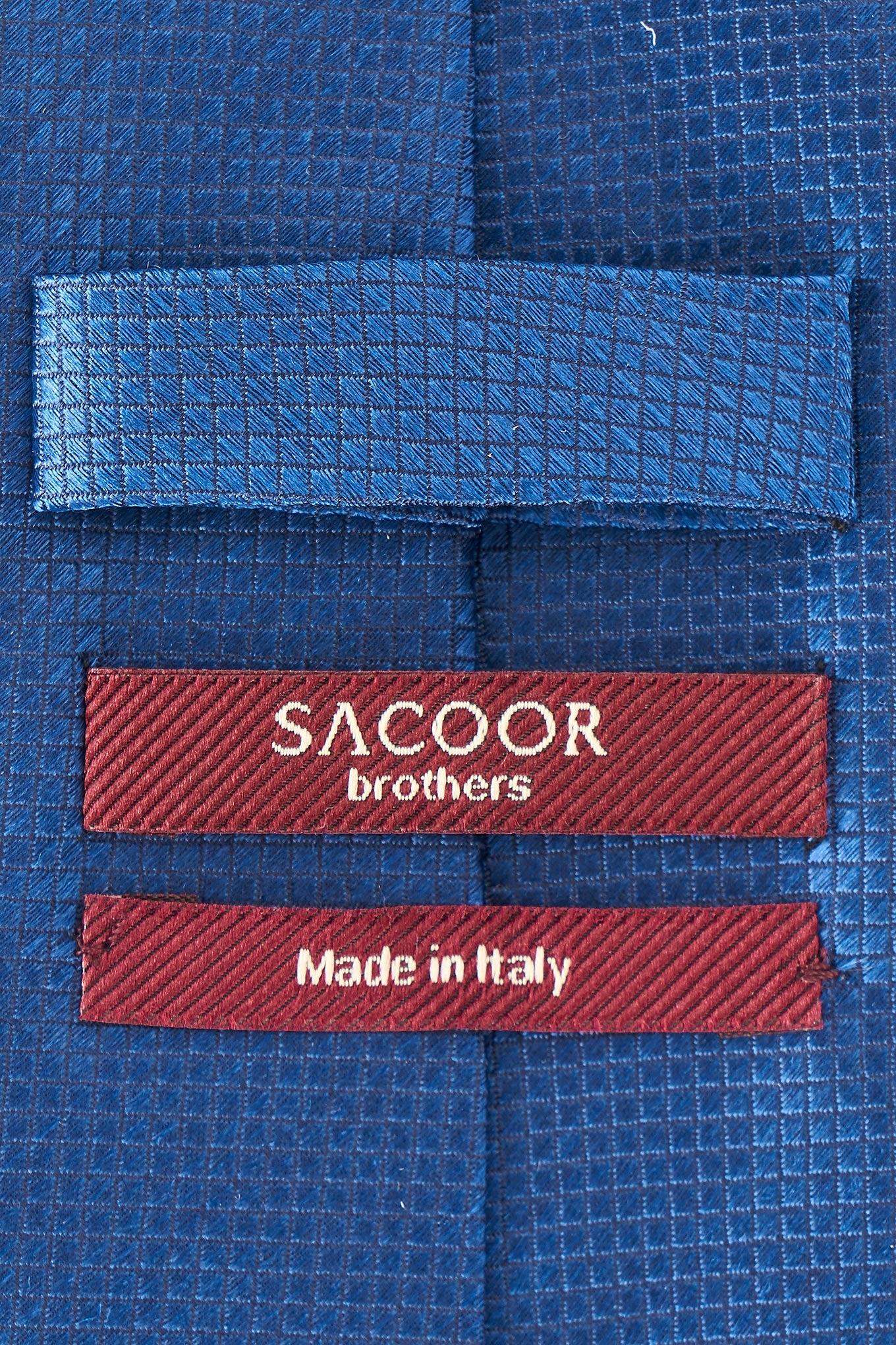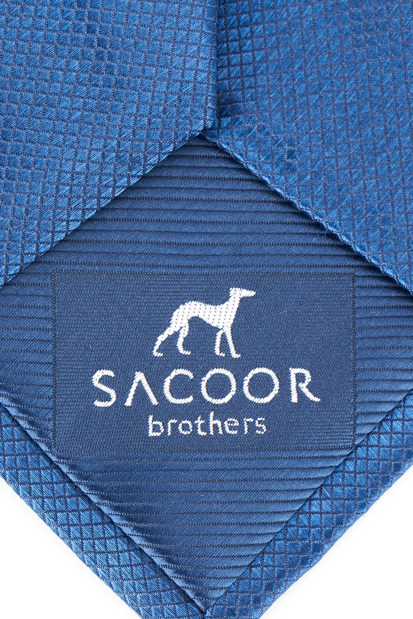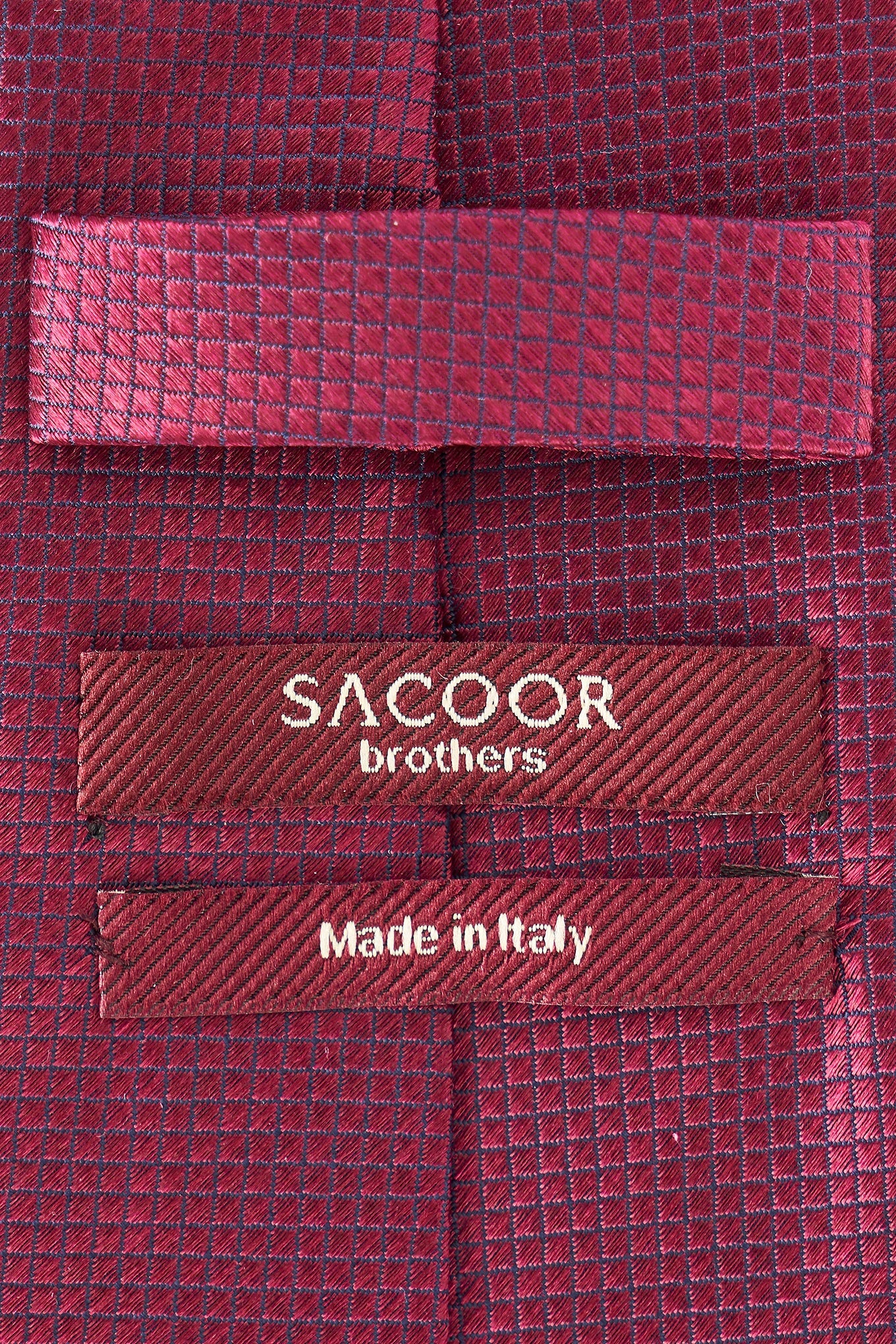 Classic, smooth men's tie with soft geometric-inspired texture. This men's tie is made of pure silk for a superior level of softness and elegance. With custom lining. Italian confection, with manual finishing. 8 cm wide at the widest part available at Sacoor Brothers online store.