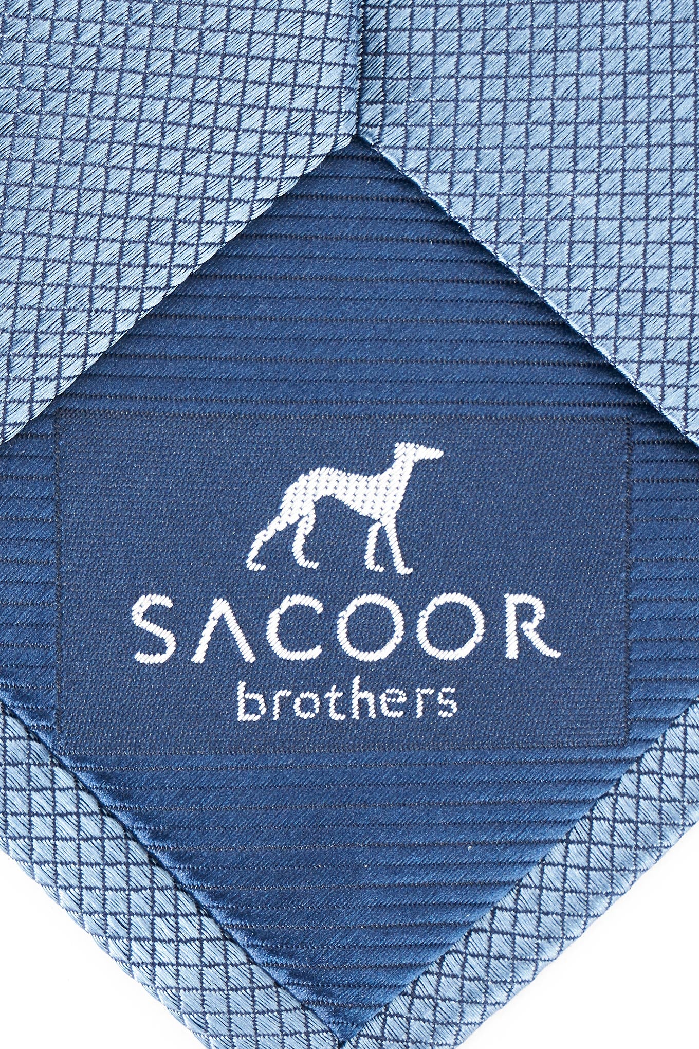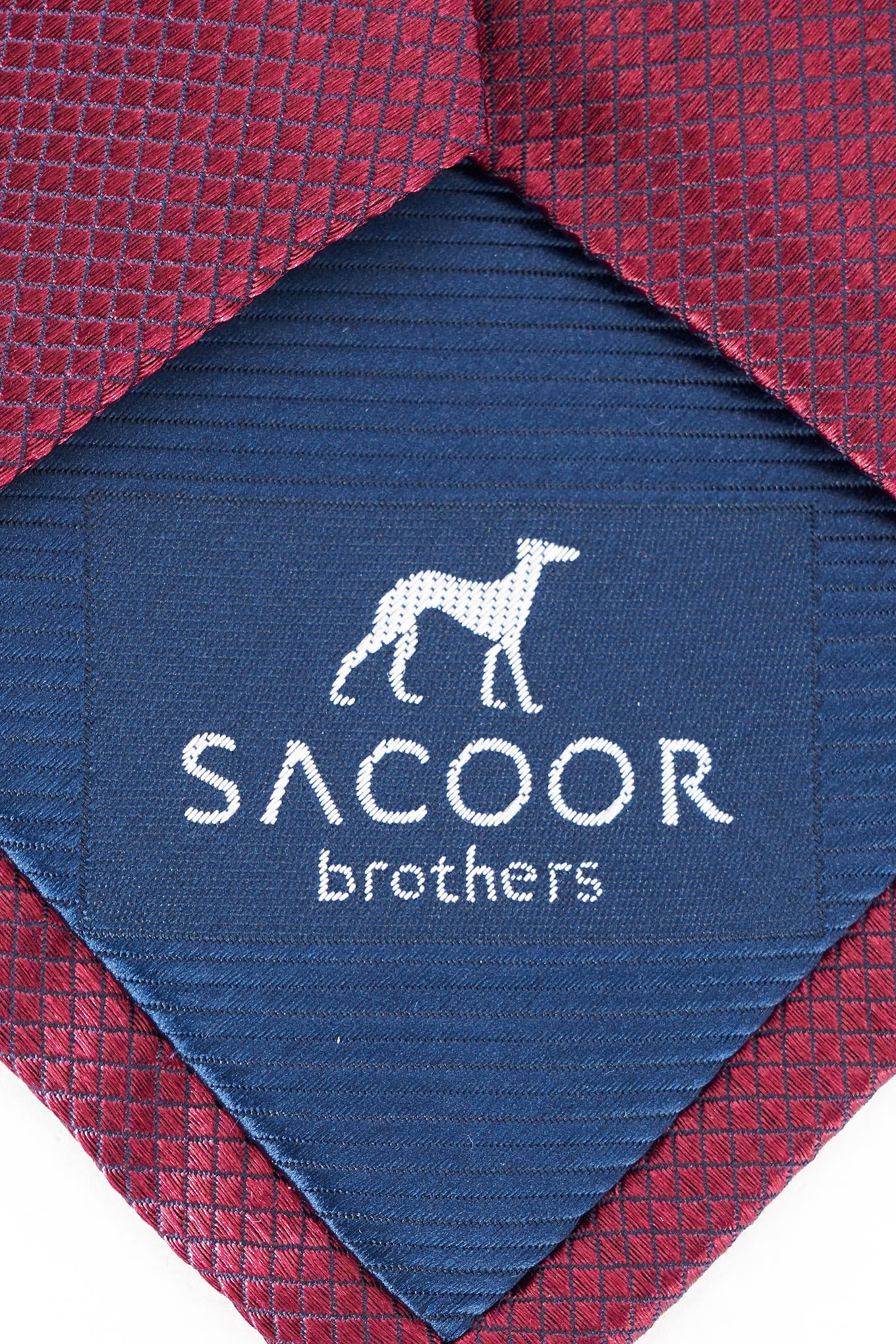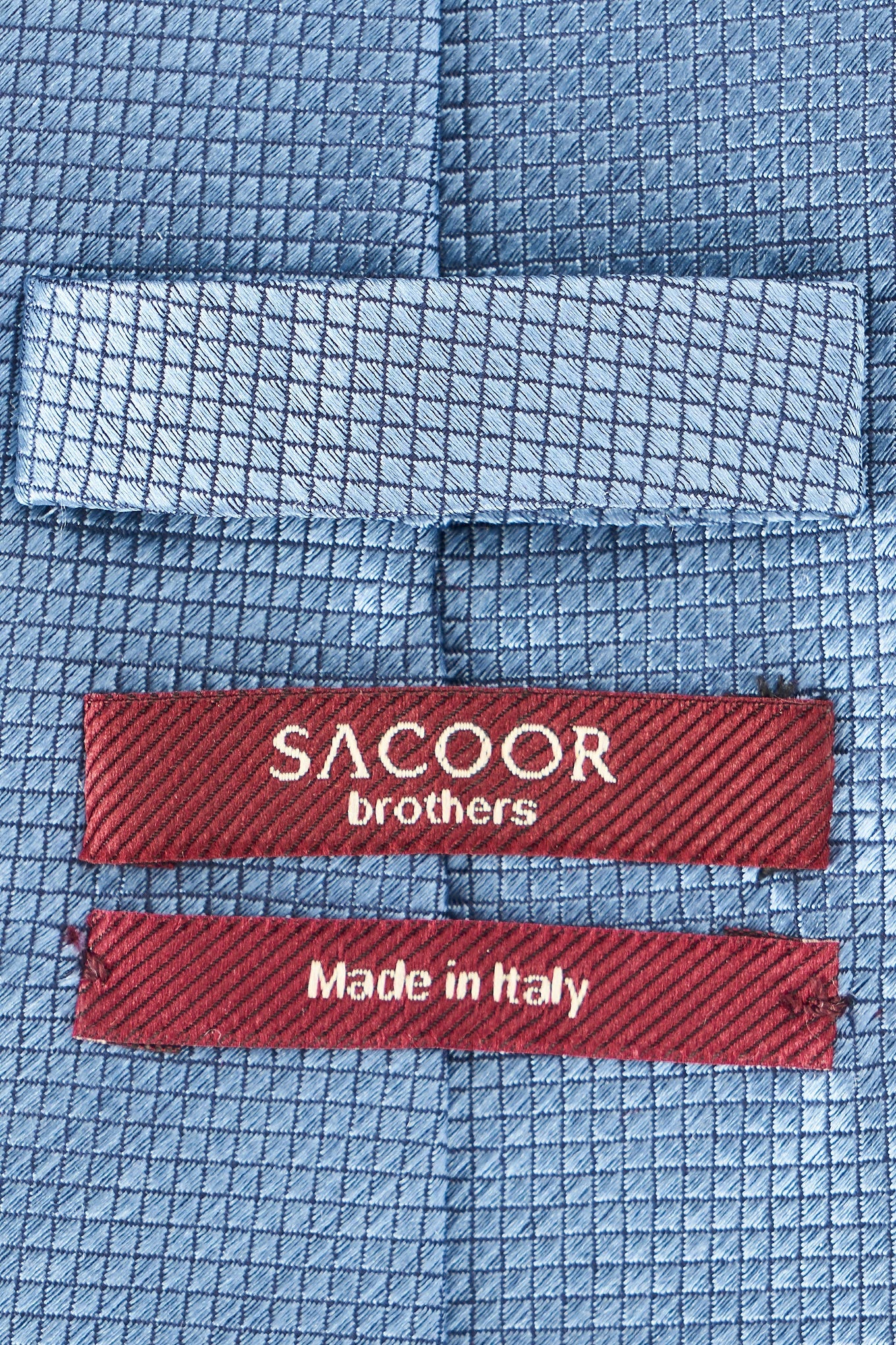 Classic, smooth men's tie with soft geometric-inspired texture. This men's tie is made of pure silk for a superior level of softness and elegance. With custom lining. Italian confection, with manual finishing. 8 cm wide at the widest part available at Sacoor Brothers online store.