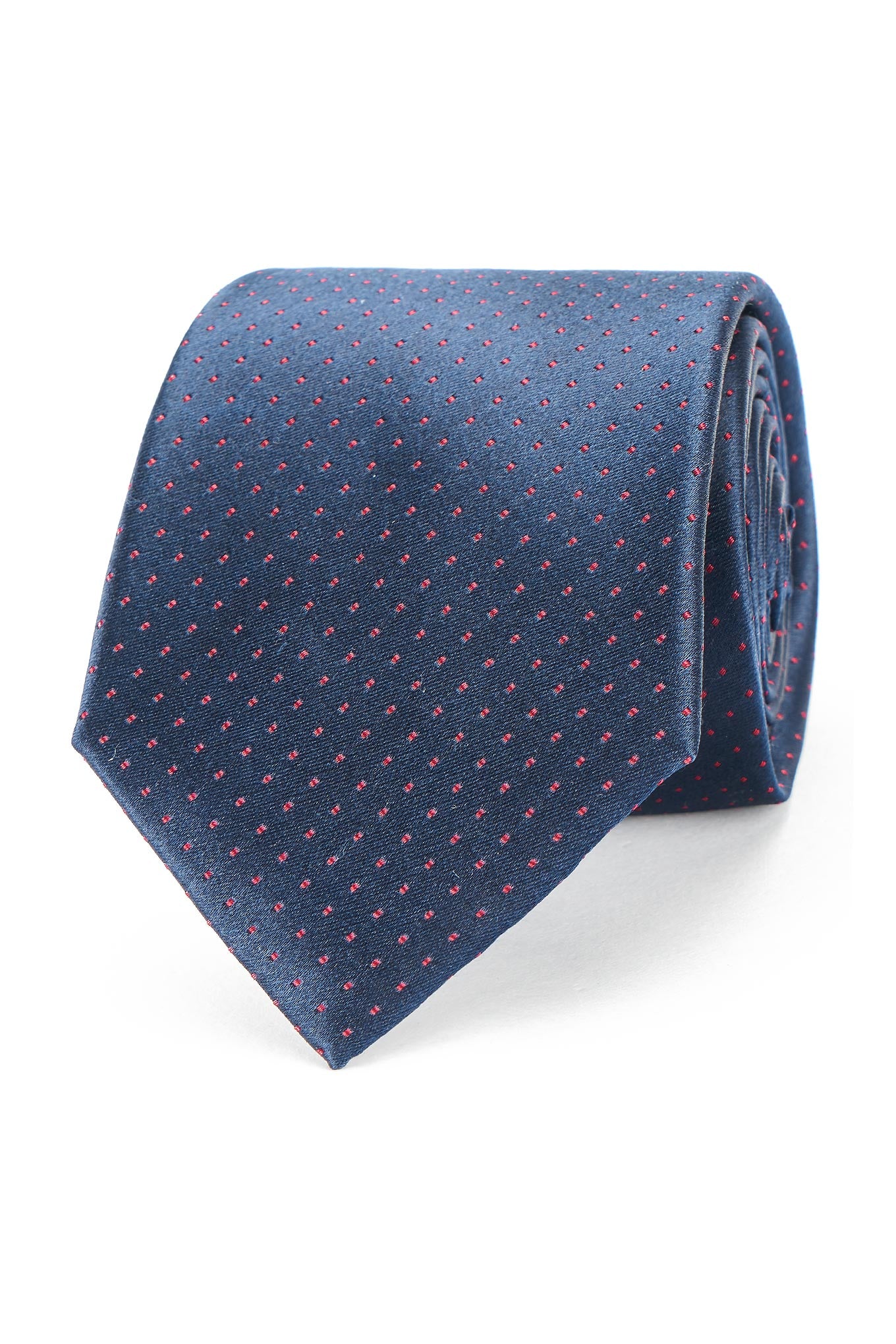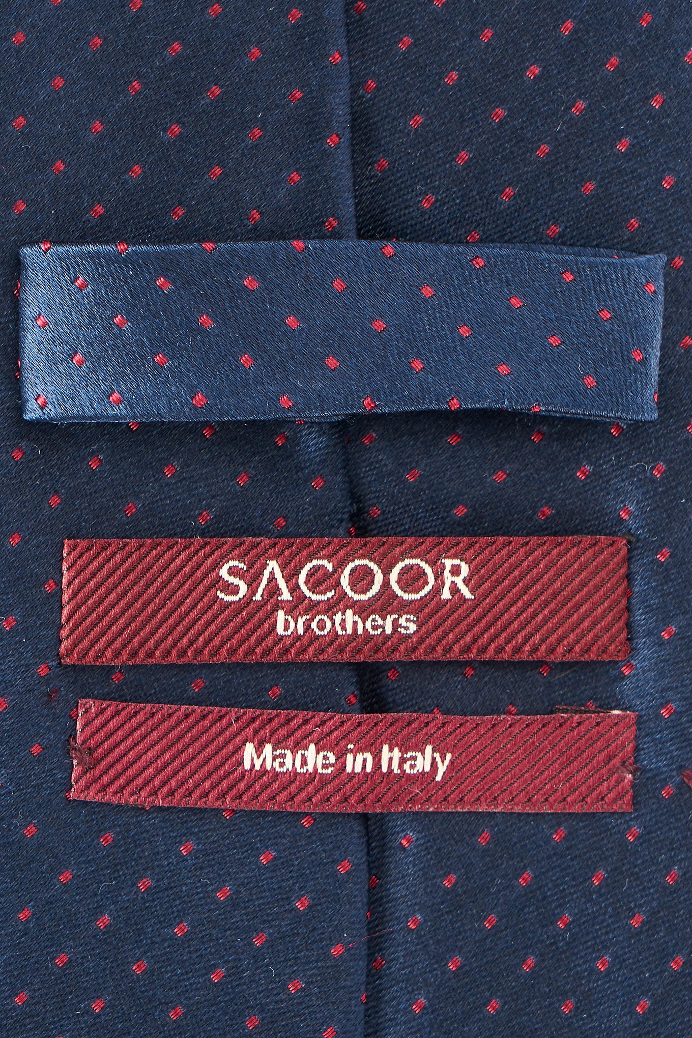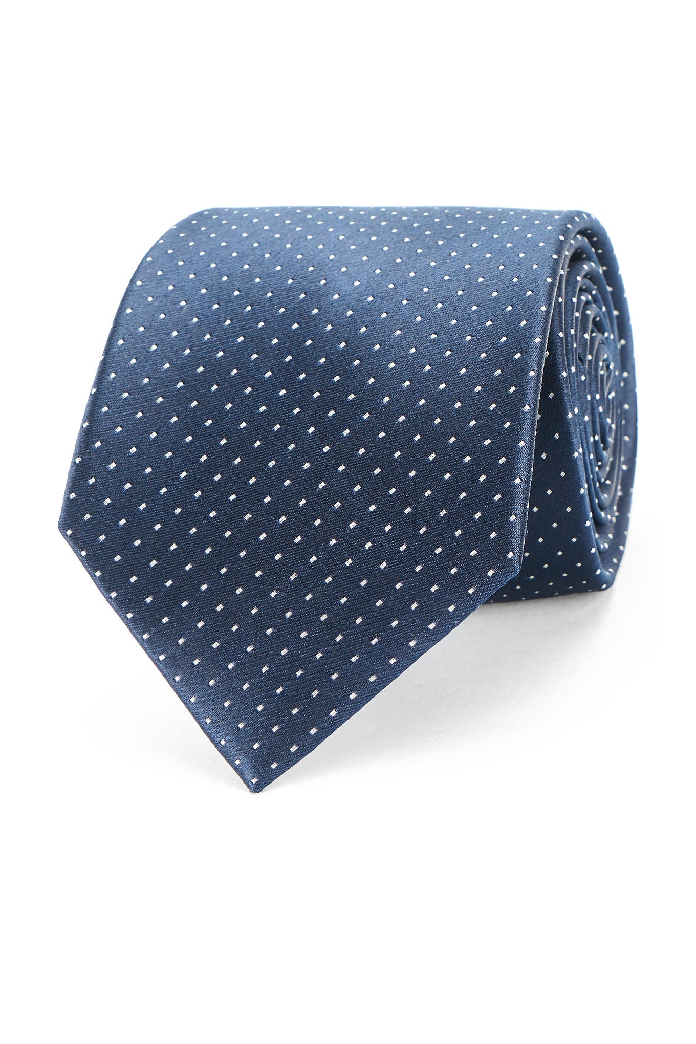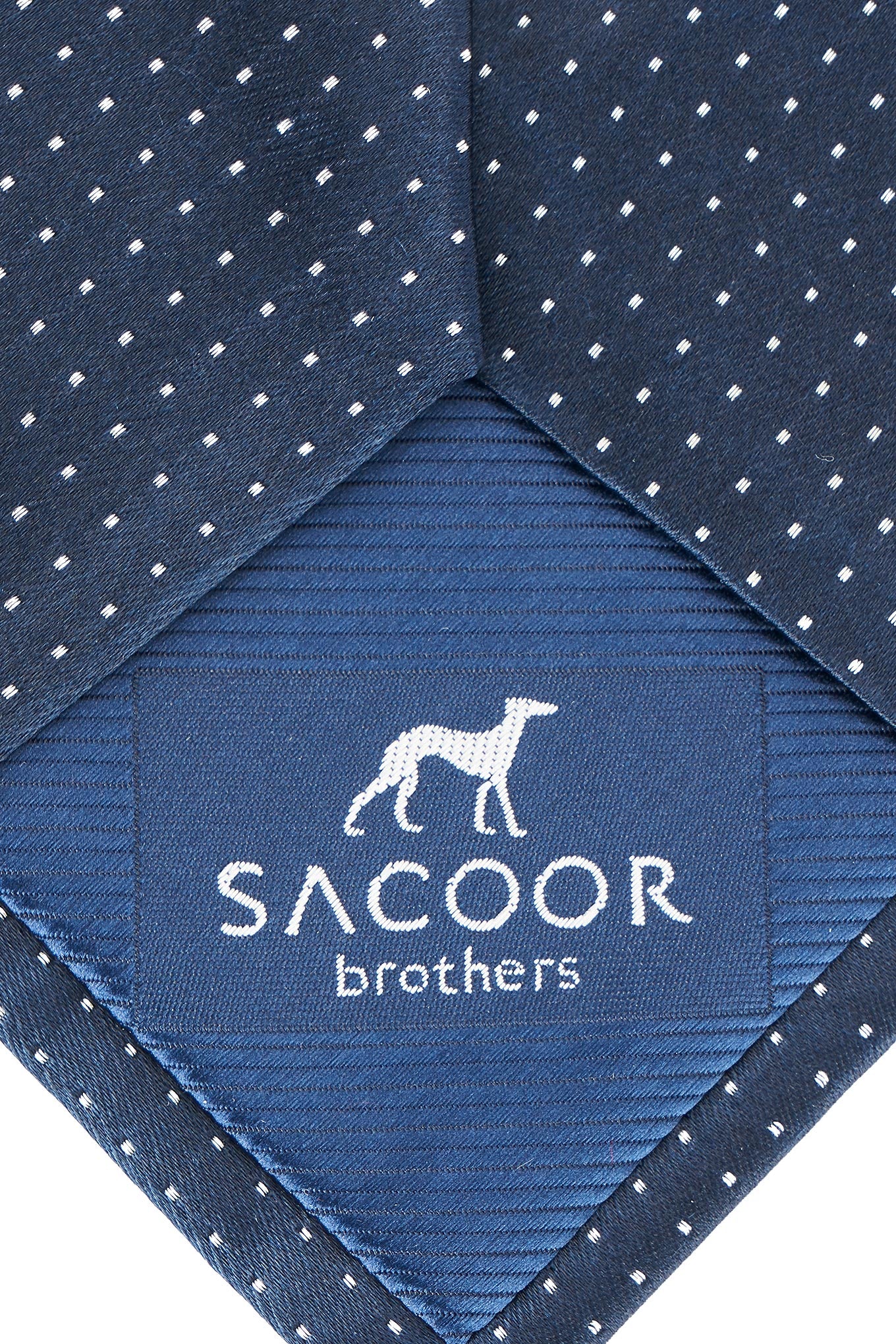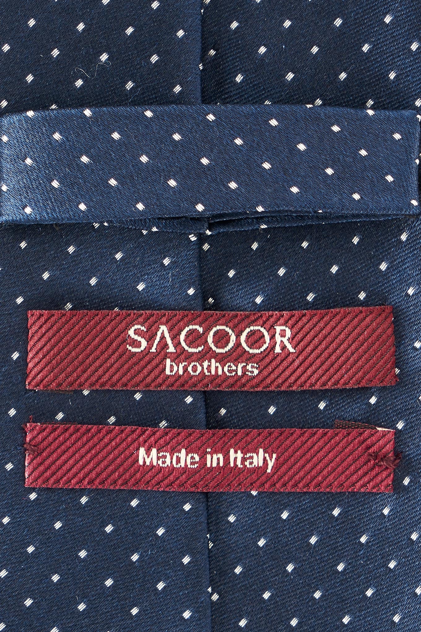 Classic men's tie, with discreet punctuated pattern, on plain background. This men's tie is made of pure silk for a superior level of softness and elegance. With custom lining. Italian confection, with manual finishing. 8 cm wide at the widest part available at Sacoor Brothers online store.
