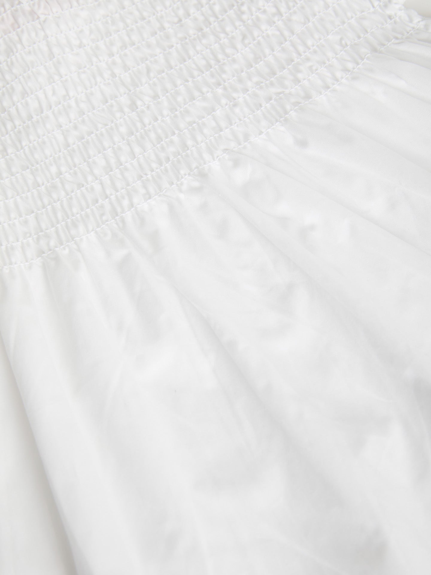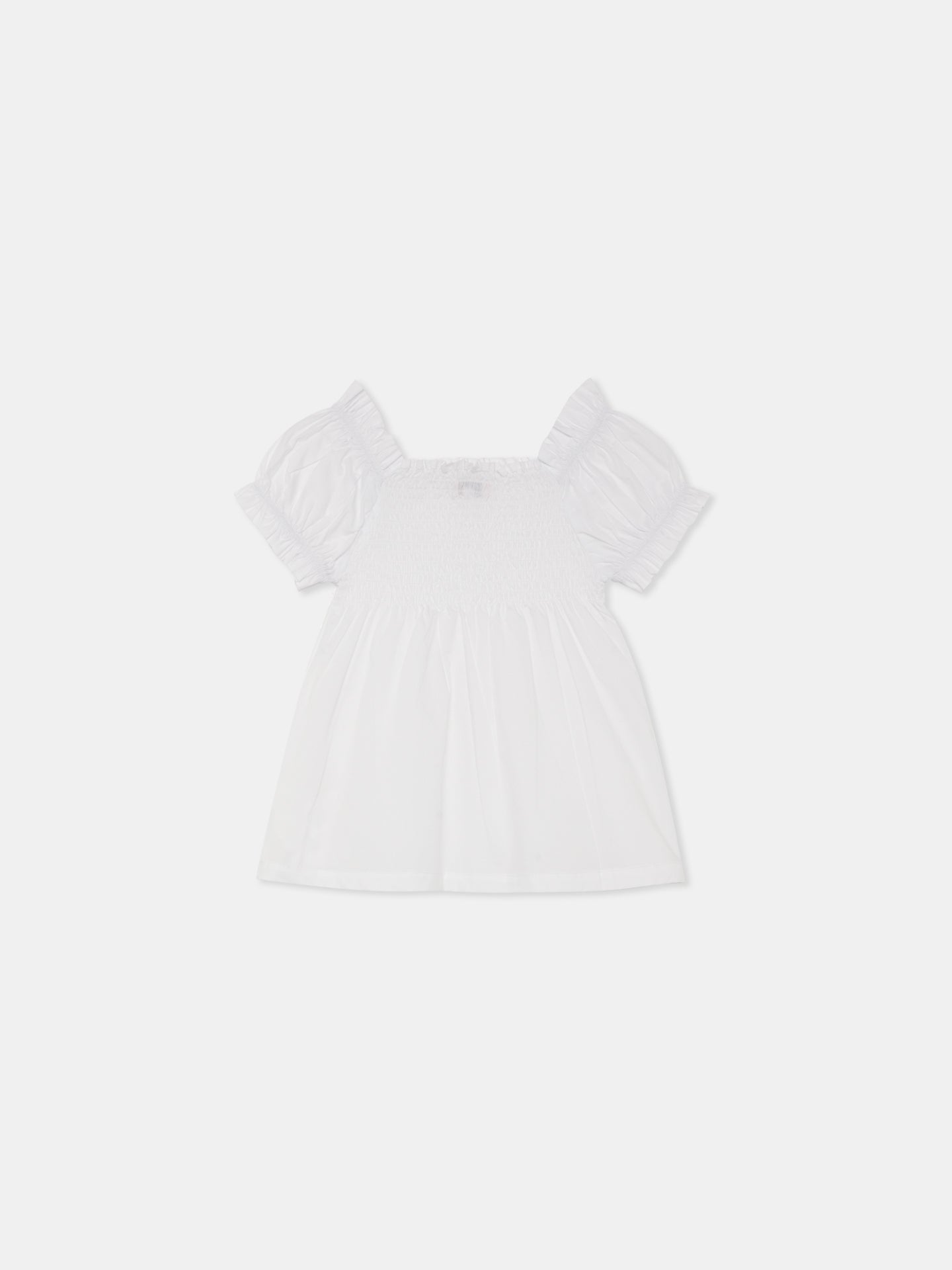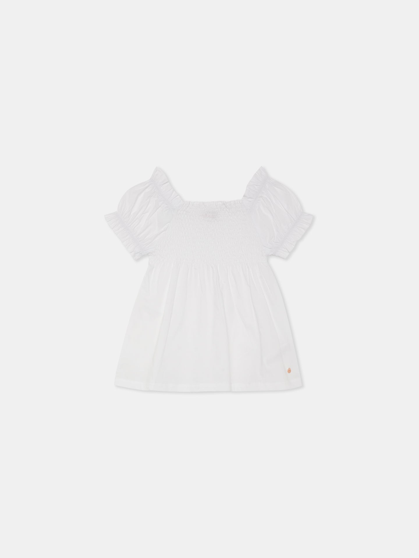 Plain colour blouse made of soft cottonfabric for maximum comfort. Featuring empire waistline with smock embroidery and ballon sleeves. Rich details such as Sacoor personalized rose gold plate .