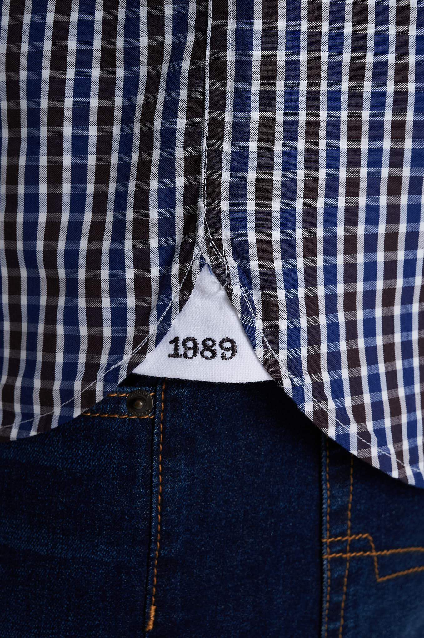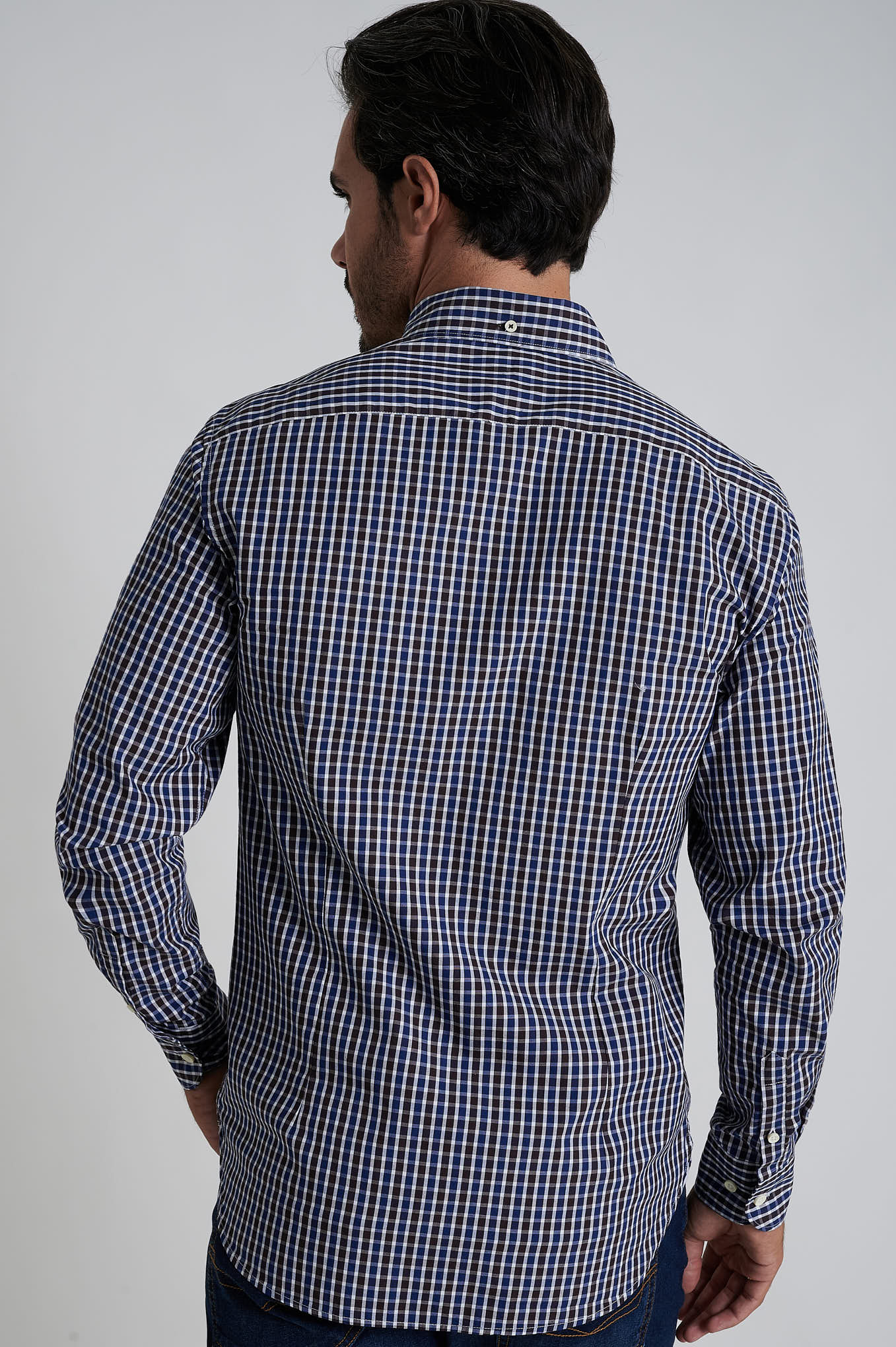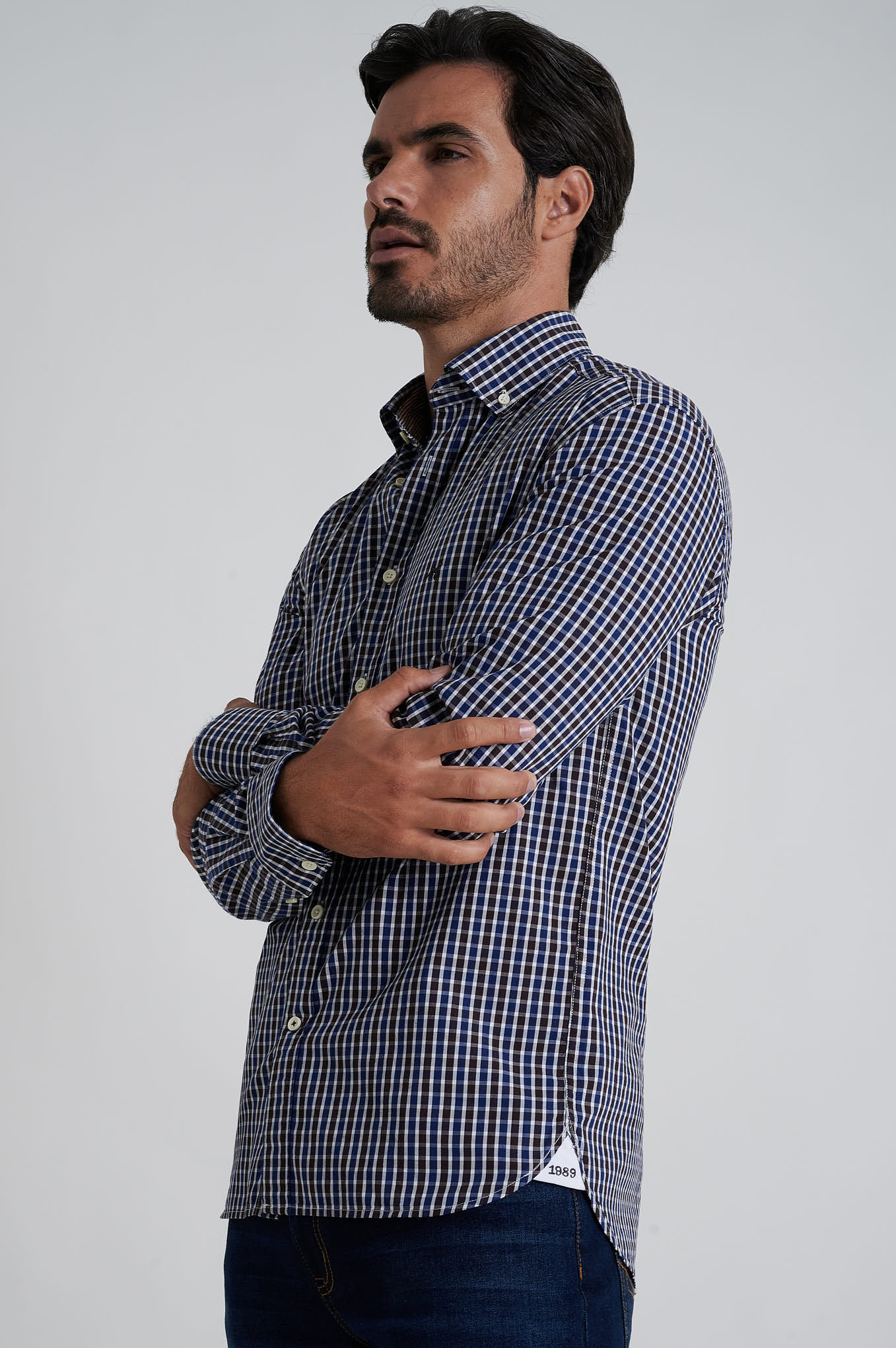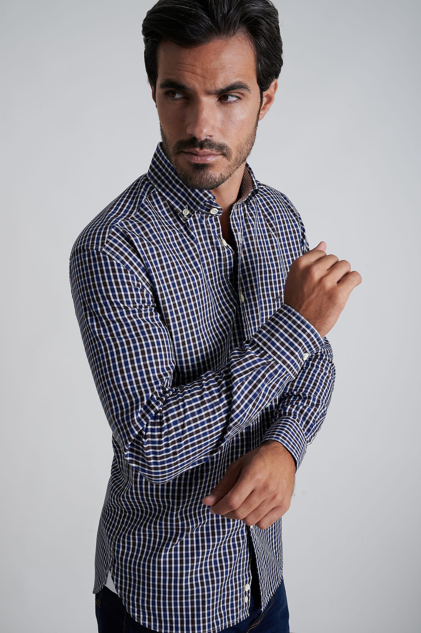 Men's checkered shirt in 100% cotton. Open collar with buttons, including on the back. Contrast fabric inside the collar. Embroidered Sacoor logo on the chest. English seams, more comfortable and for a quality finish. Lateral reinforcement of triangle seams. Relaxed model for use on various occasions with a sporty touch. Available at Sacoor Brothers online store. The back length in size 40 is 78 cm and the sleeve length is 66 cm. See our Size Guide.