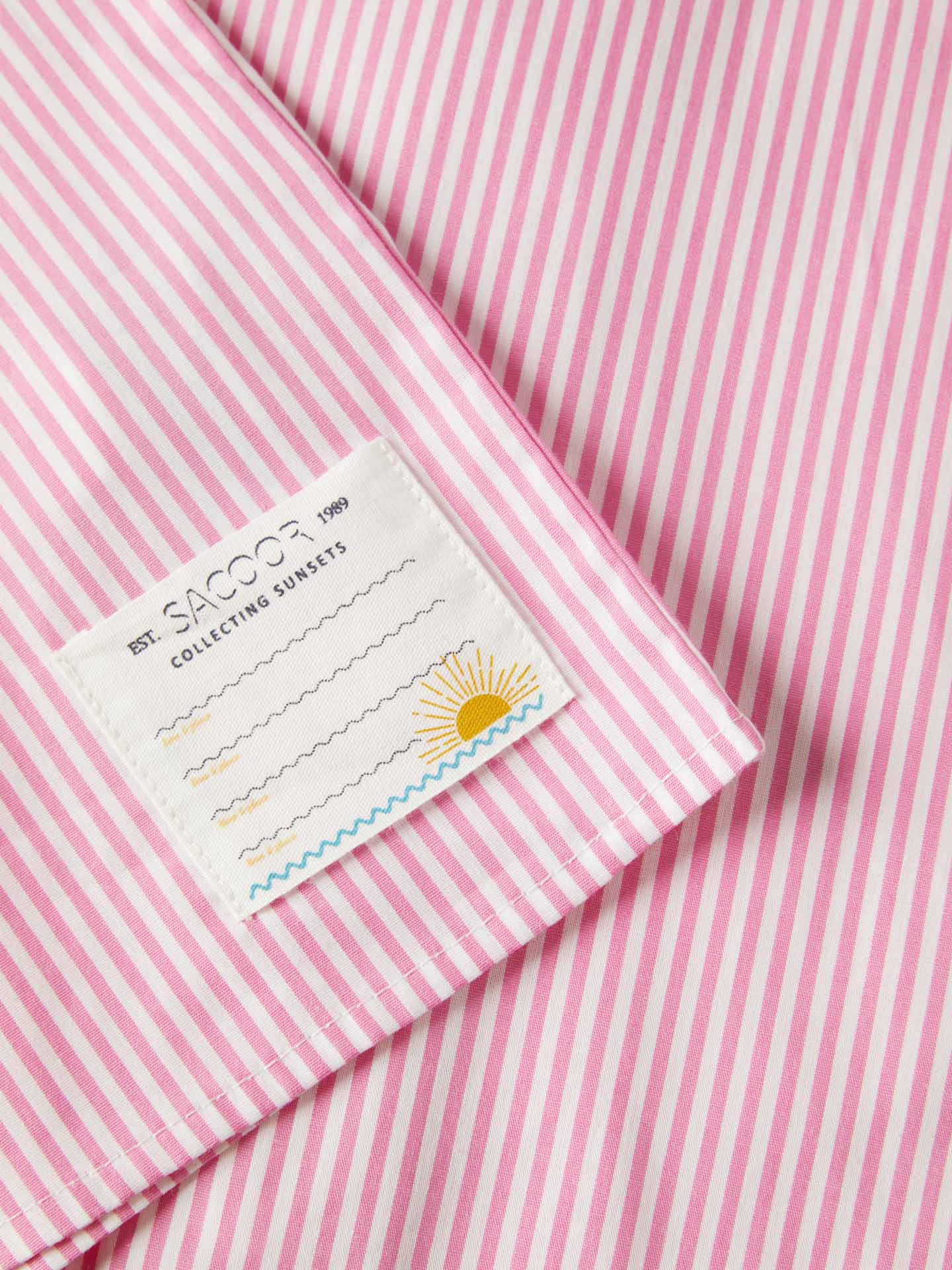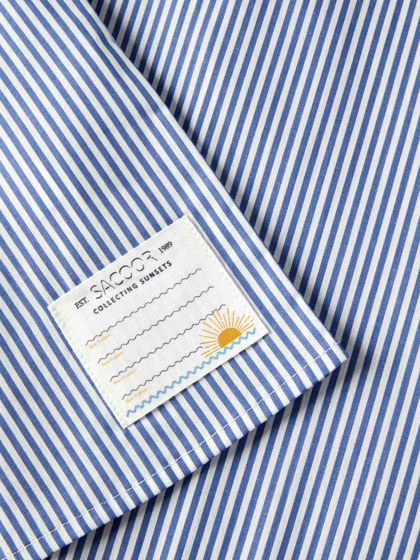 Striped shirt made of 100% cotton fabric. Features a cuban collar, button-up front placket, one patch pocket at front and short sleeves. Rich details such as cotton canvas printed label at front and logo embroidery at pocket. Special Note: Collect Sunsets and register them on your collecting sunsets label. Also, you'll find a matching shorts in our collection.