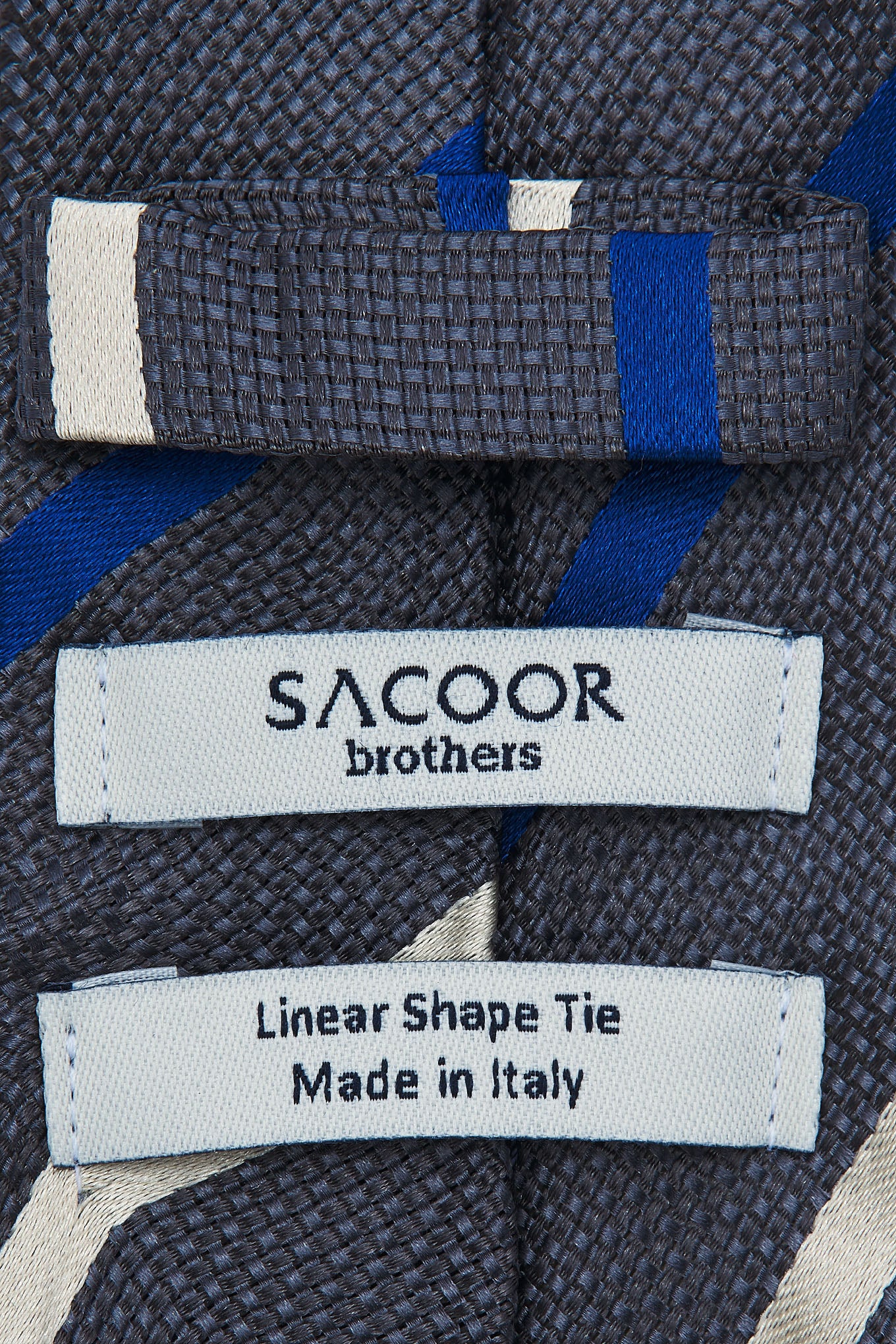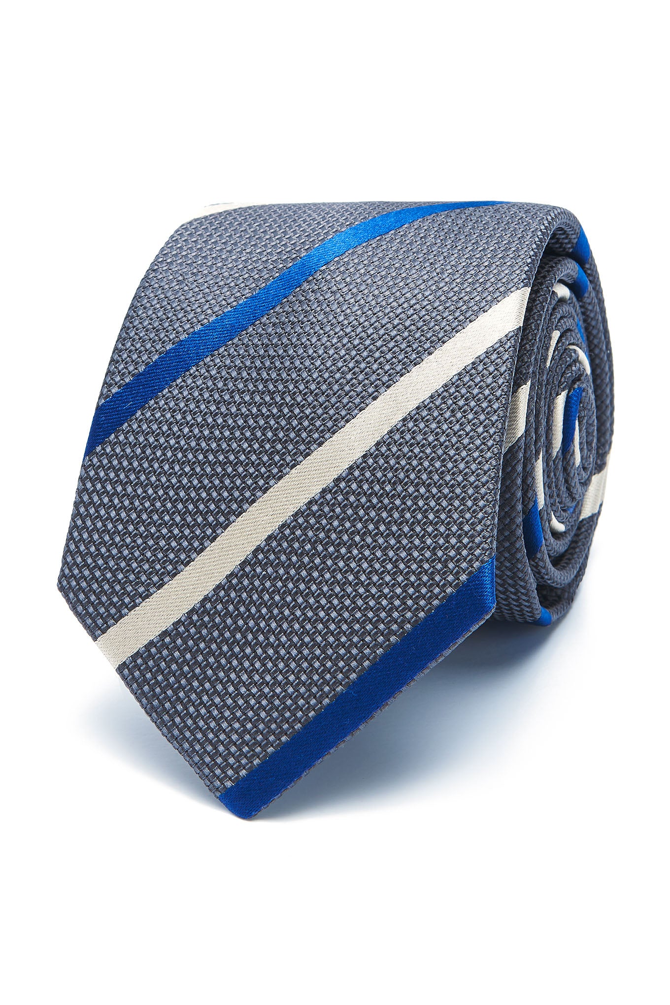 Classic men's tie, with contrasting striped pattern, on a textured background. This men's tie is made of silk, the excellence of softness. With custom lining. Italian confectionery. 7 cm wide at the widest part.