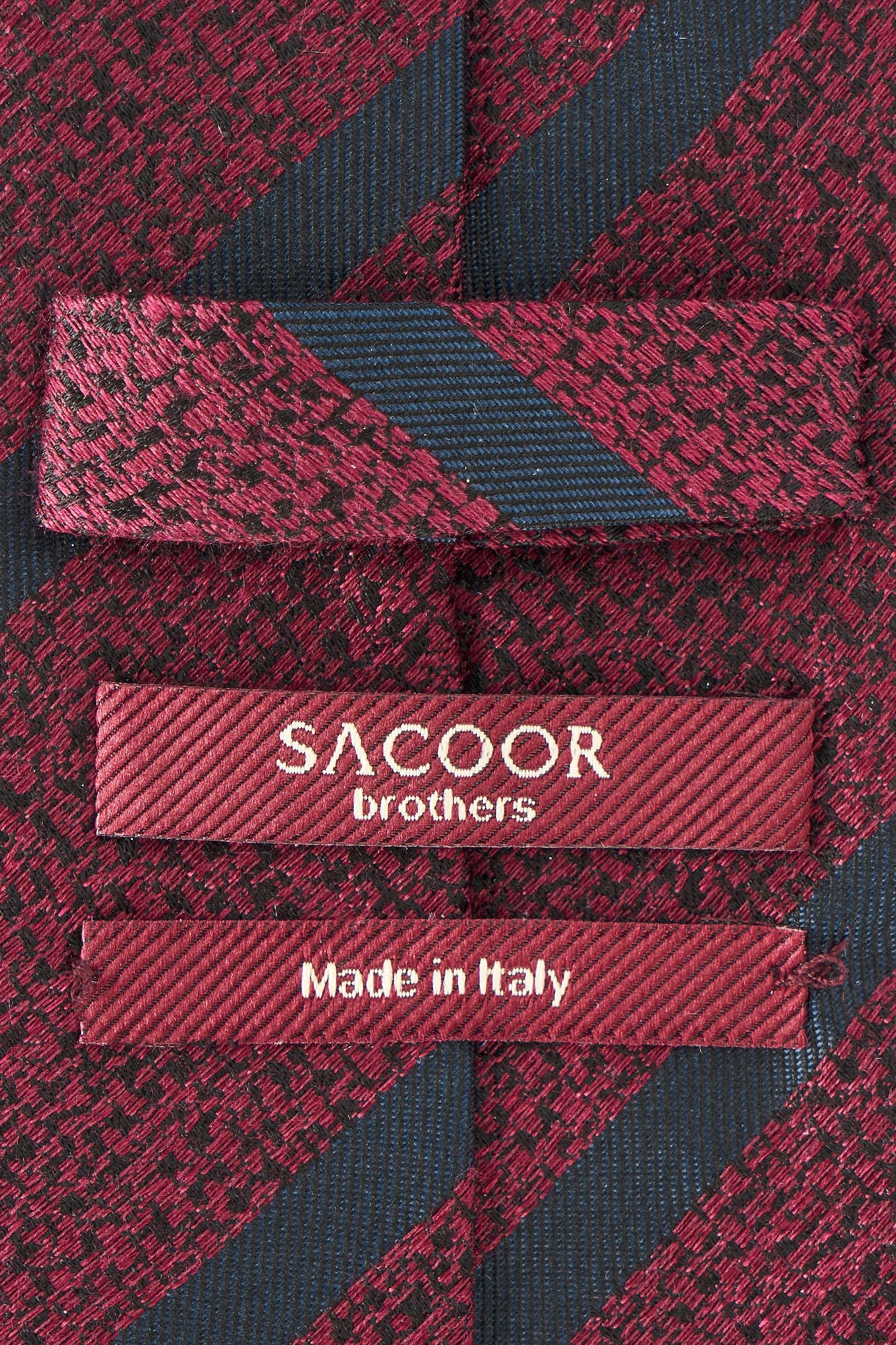 Classic men's tie, with elegant striped pattern on a blended background. This men's tie is made of pure silk, combining elegance and quality. With custom lining. Italian confection, with manual finishing. 8 cm wide at the widest part.