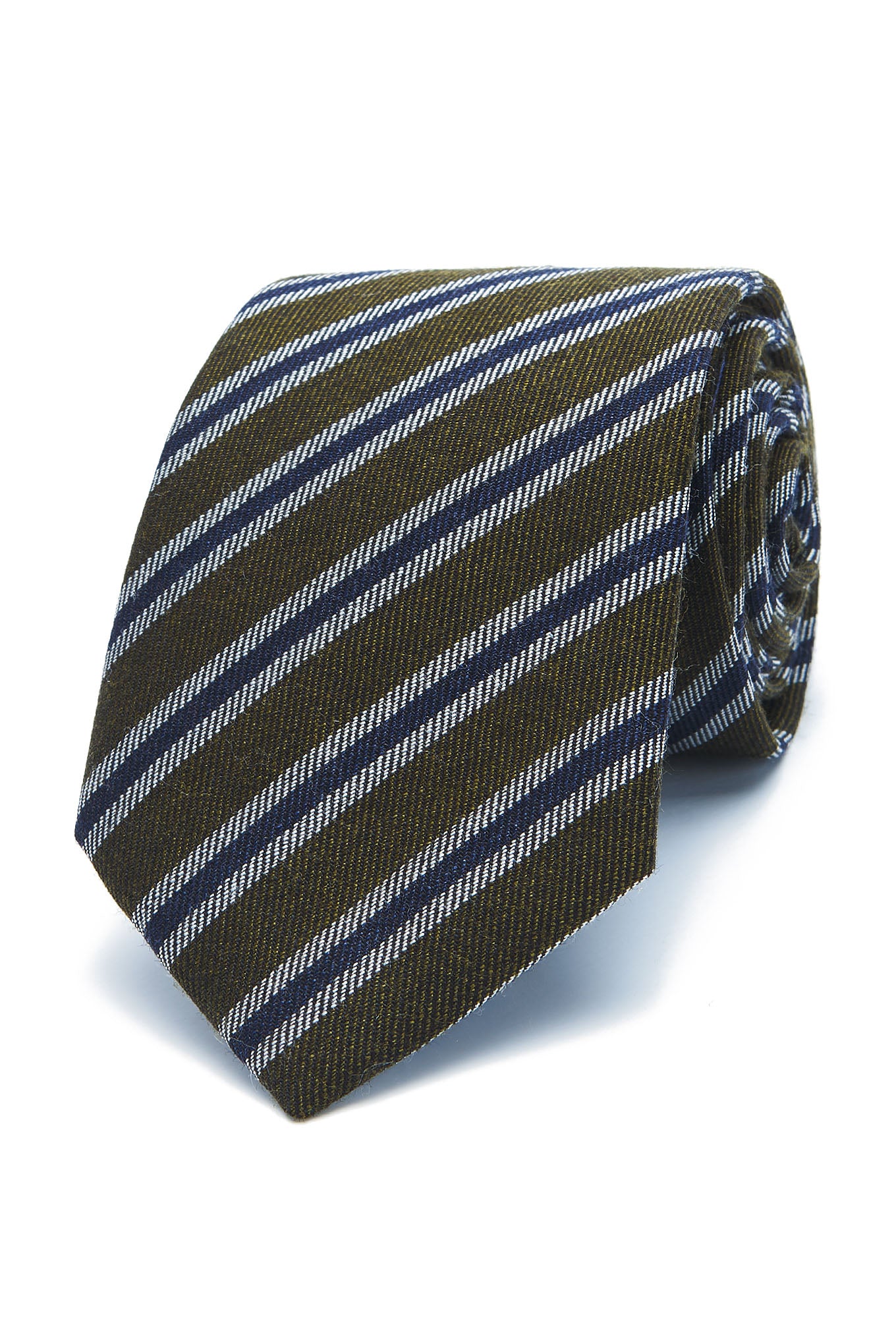 Striped Pattern Tie Silk and Wool Blend 7cm