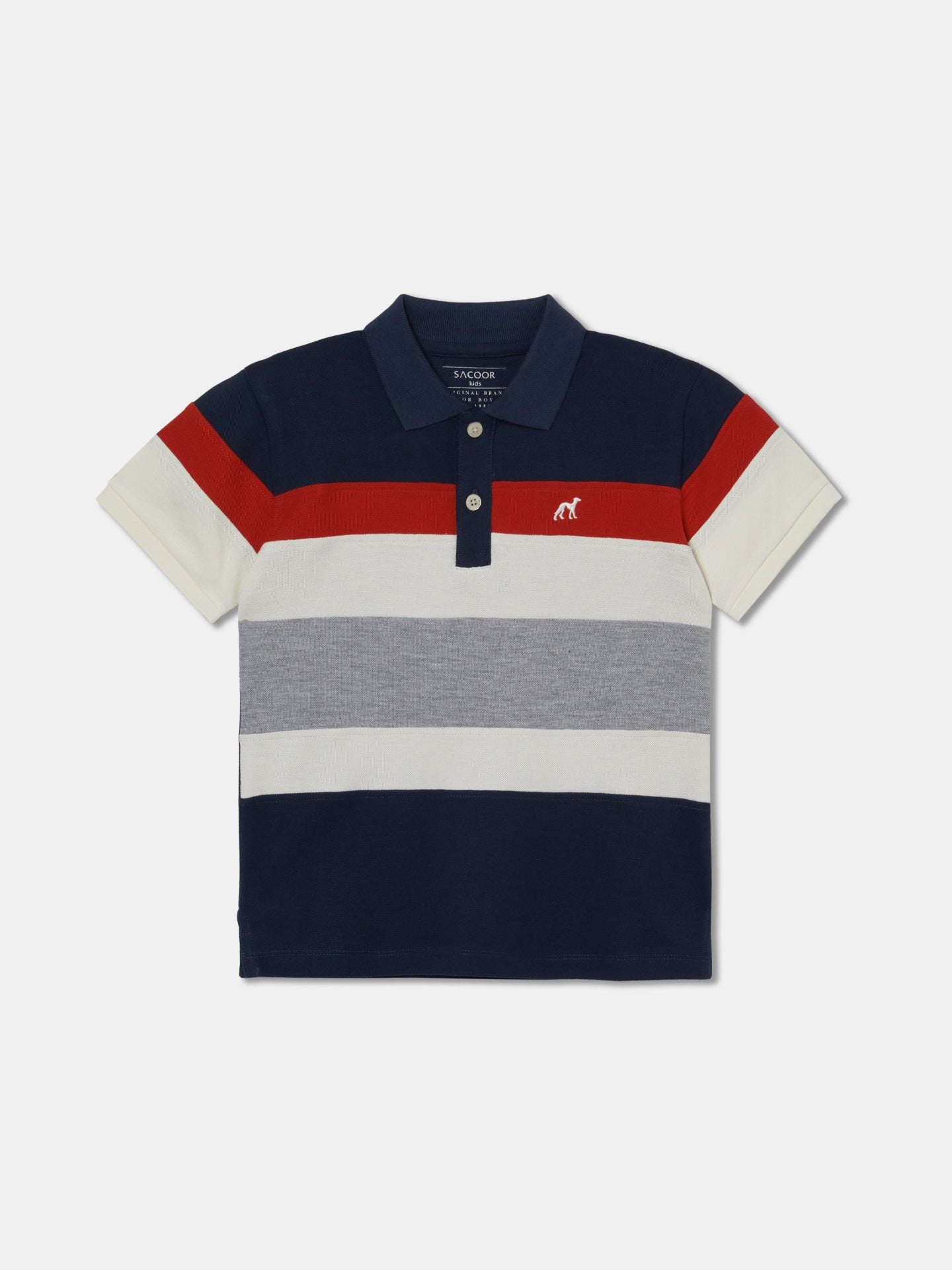 Stripped polo-shirt made of 100% cotton piquet. Featuring a rib collar, two-button placket and short sleeves with rib cuffs. Rich details such as contrast colour piquet stripes at front and contrast colour logo embroidery at chest.