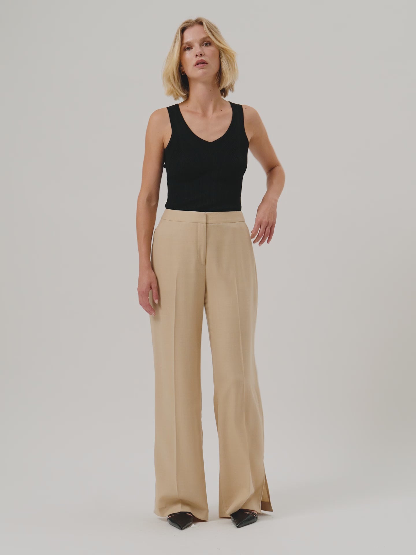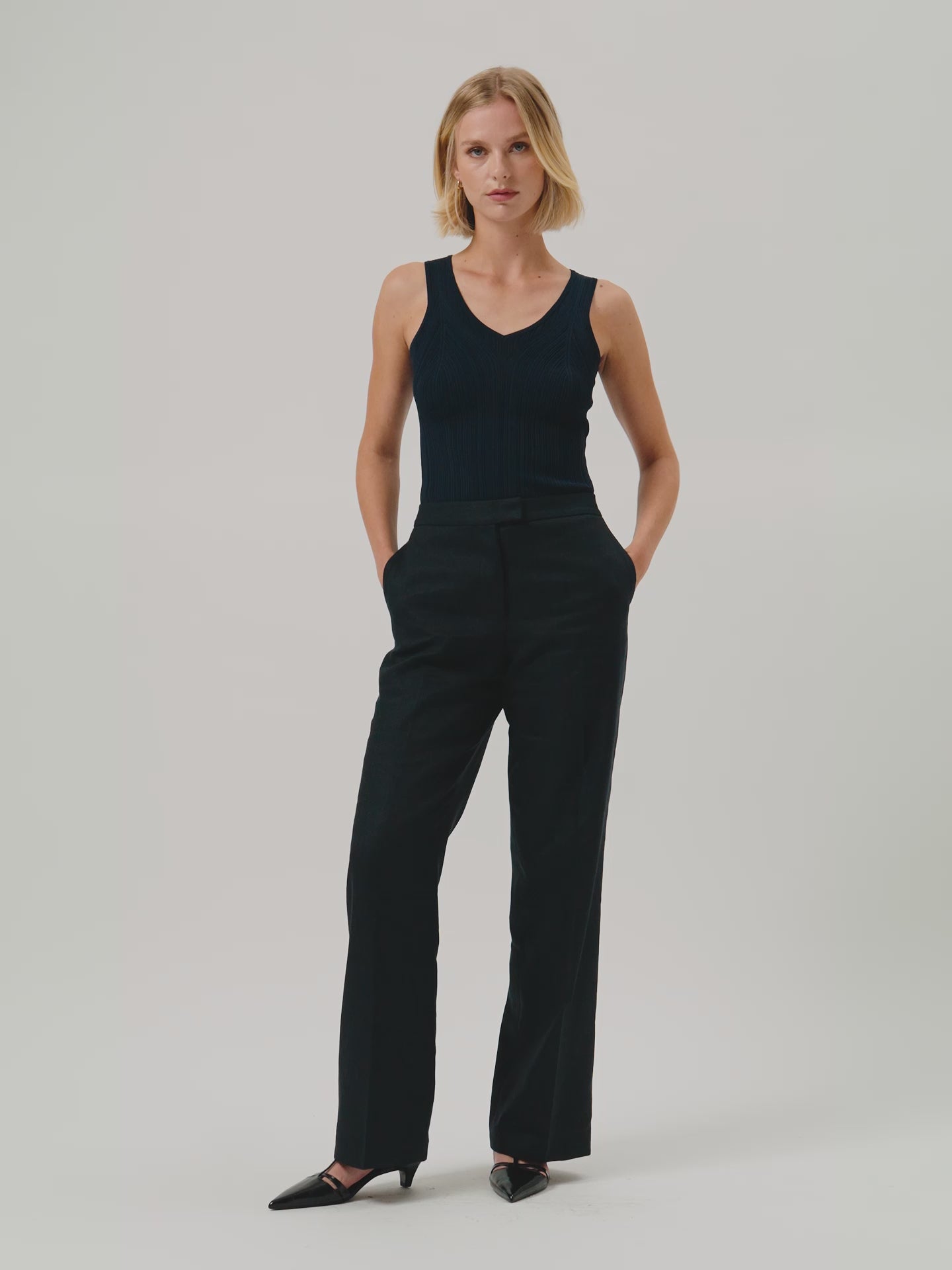V-Neck Rib Top In Viscose blend With Pointelle Detail