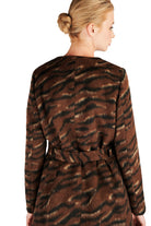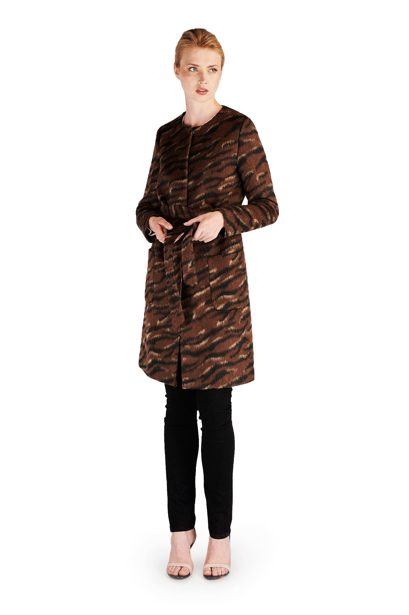 A Women's overcoat that will be a highlight in this season. Special edition made in Portugal. Model by knee, in an animal pattern, strong trend this winter. Rounded neckline and belt to enlace. With press buttons and side pockets. Back openings. Full lining for total comfort and interior pocket. A very elegant overcoat, to match several Sacoor pieces. Collection Autumn / Winter 2019 is available in the online store Sacoor Brothers.