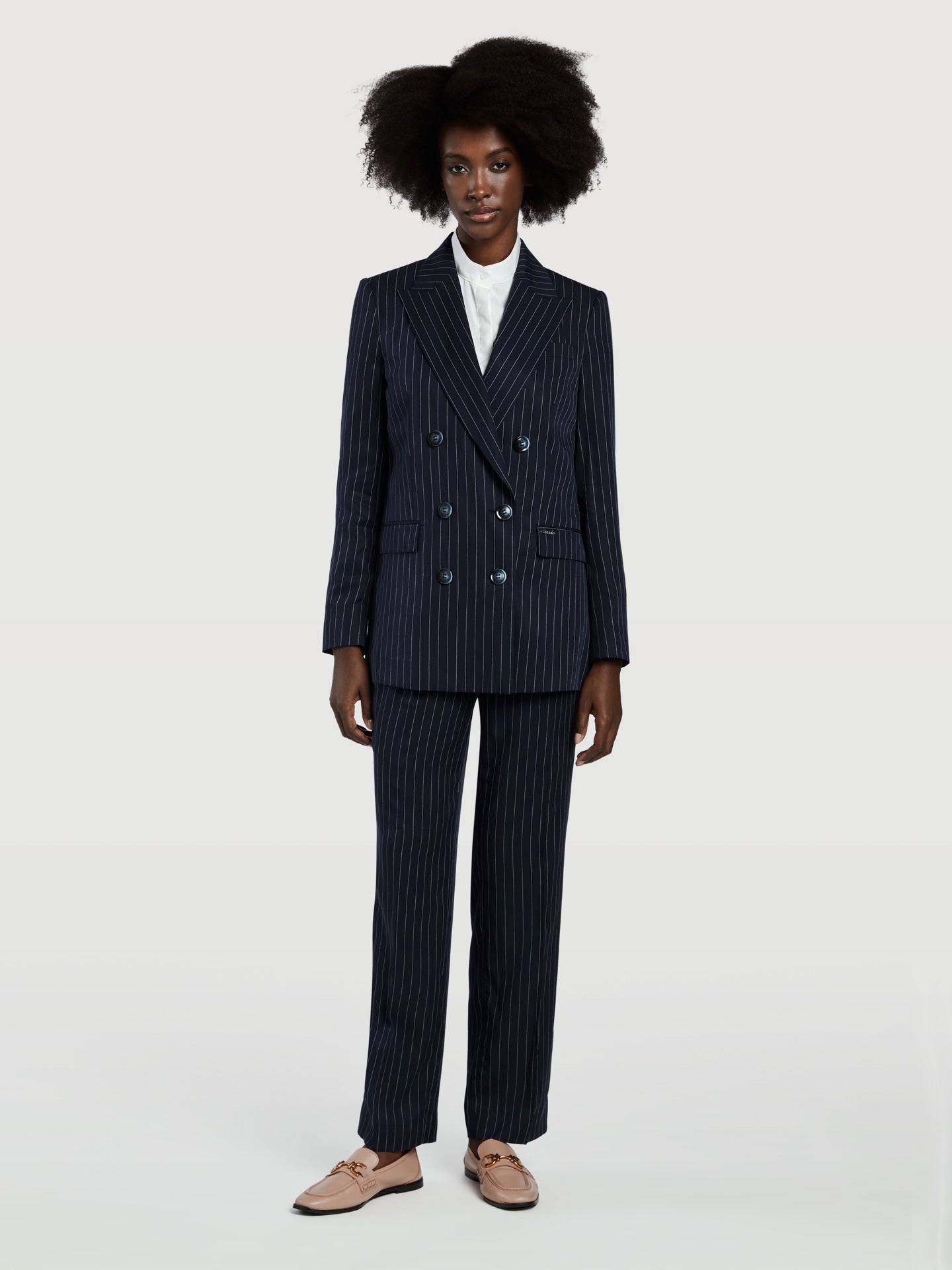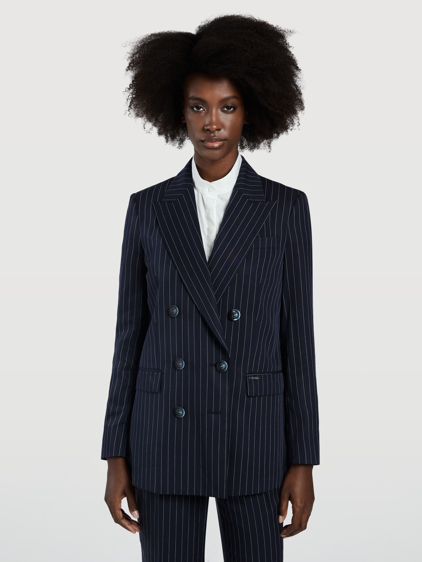 Pinstripe Double-Breasted Suit Blazer