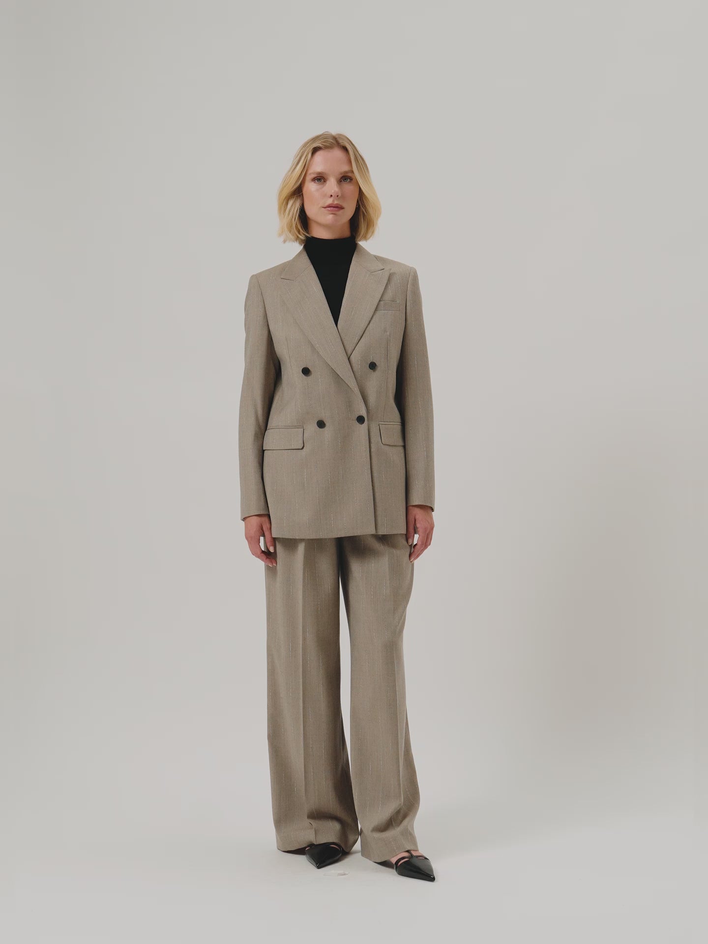 Double-Breasted Blazer In Striped Wool Blend