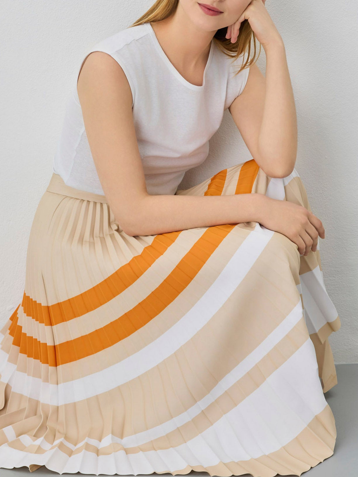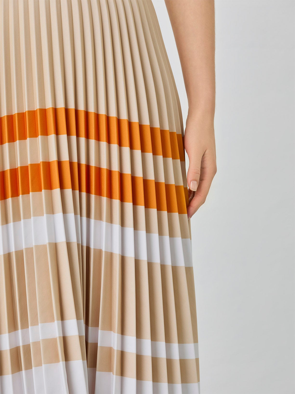 Midi skirt with soleil pleating and printed horrizontal stripes. Fastening throught invisible zipper on back.