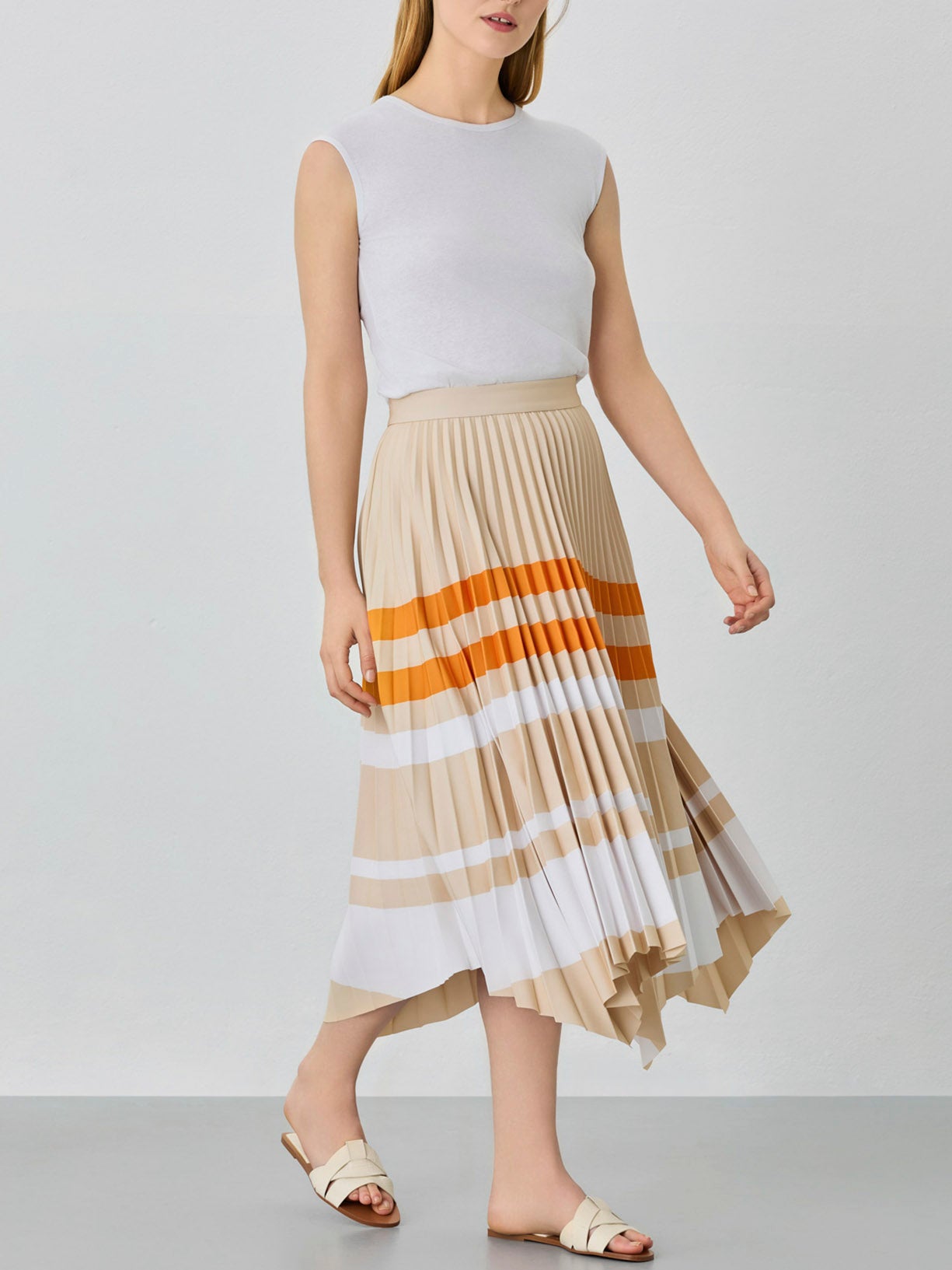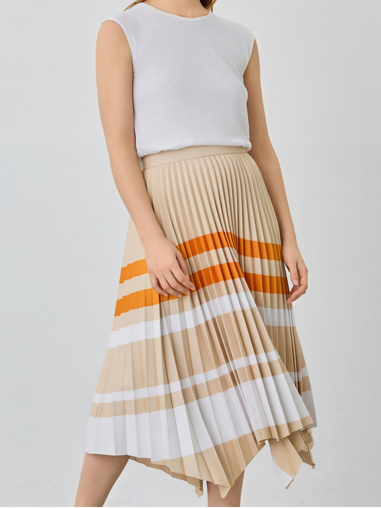 Asymmetric Pleated Skirt With Stripes